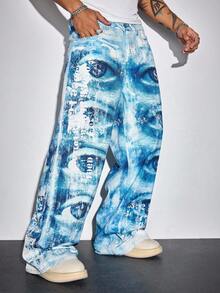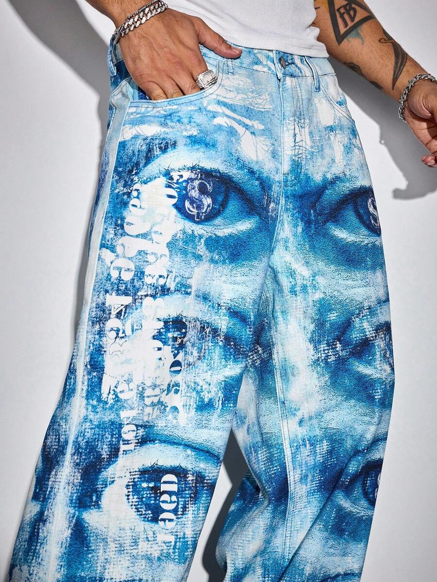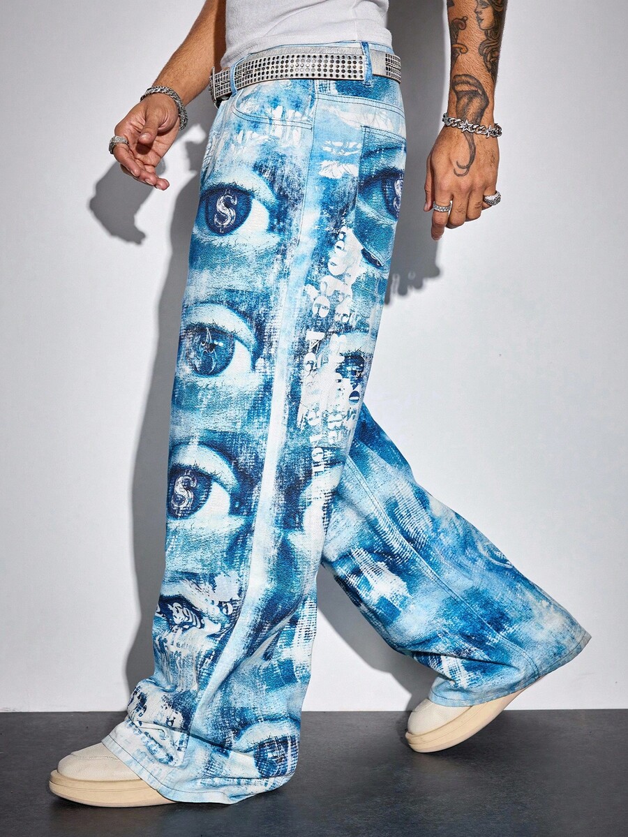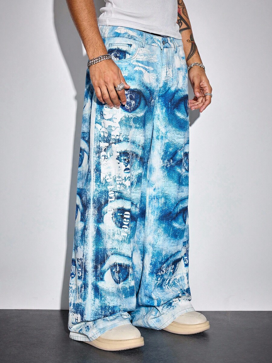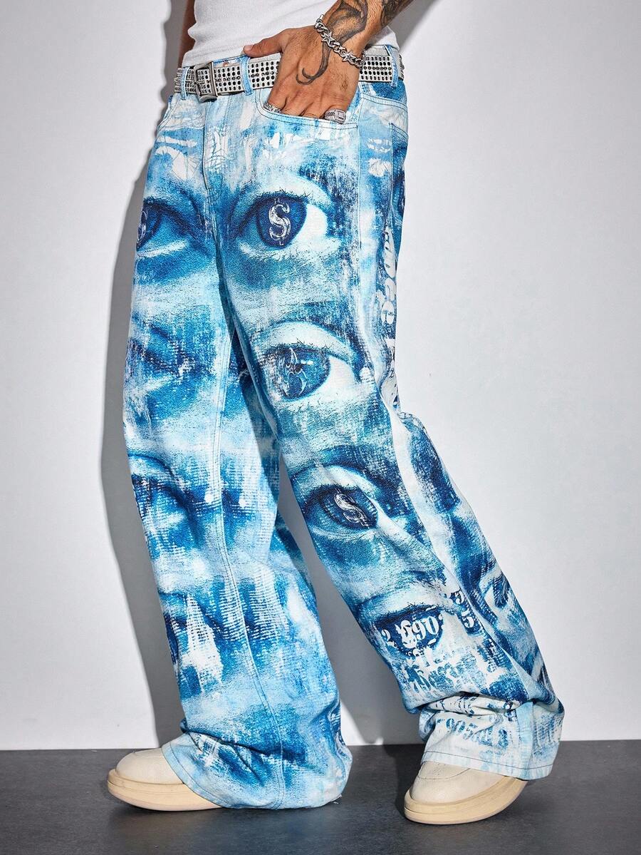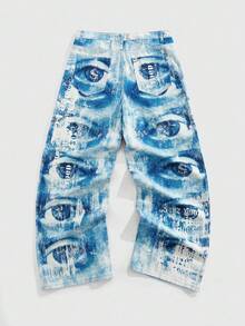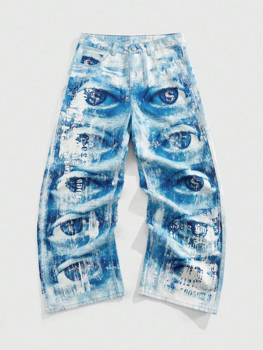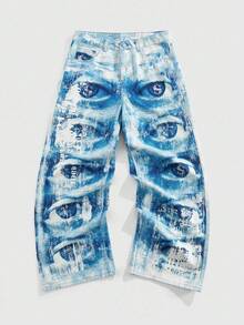 Street Life Jeans décontractés amples pour hommes avec graphique à l'œil, mode de rue