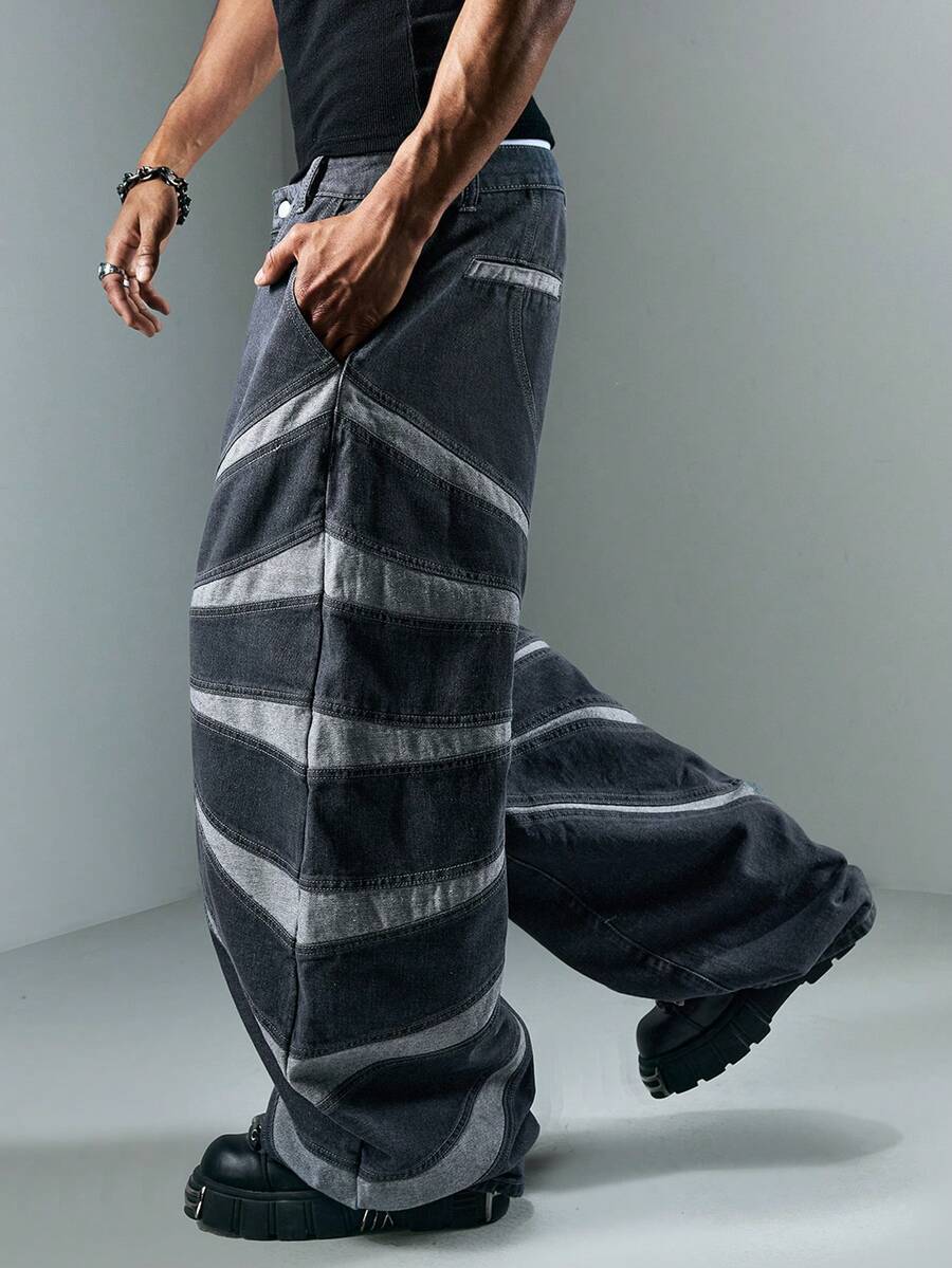 Street Life Jeans droits pour hommes avec imprimé minimaliste et effet délavé prononcé