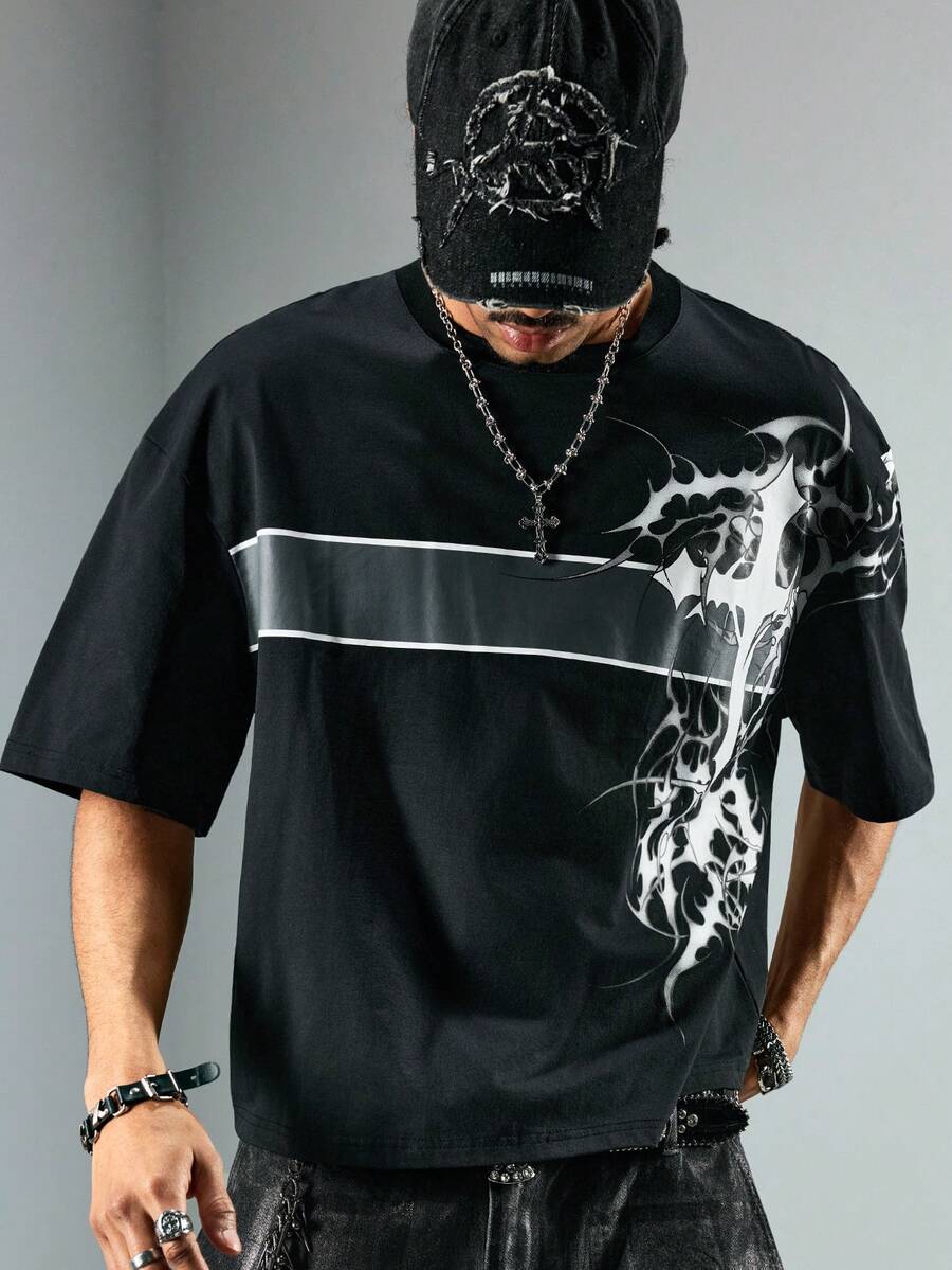 Street Life T-shirt à manches courtes col rond minimaliste imprimé pour hommes