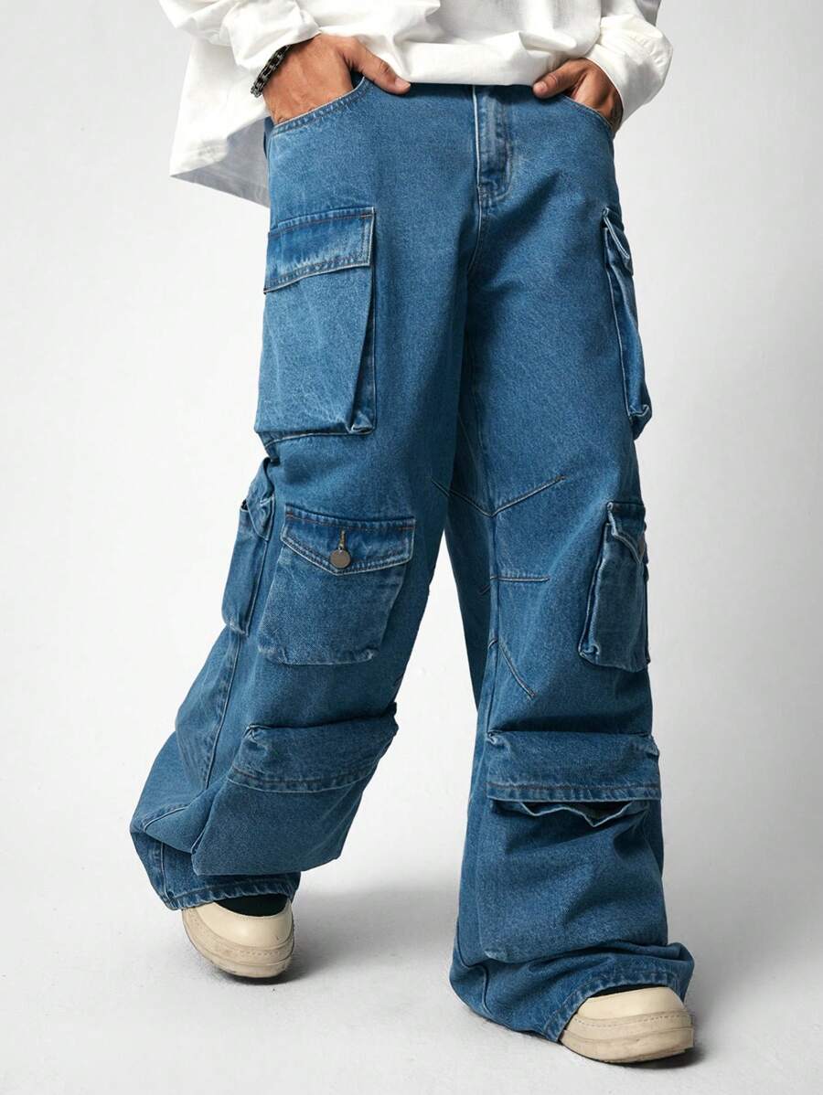 Street Life Jeans amples et confortables à jambe large avec plusieurs poches pour hommes