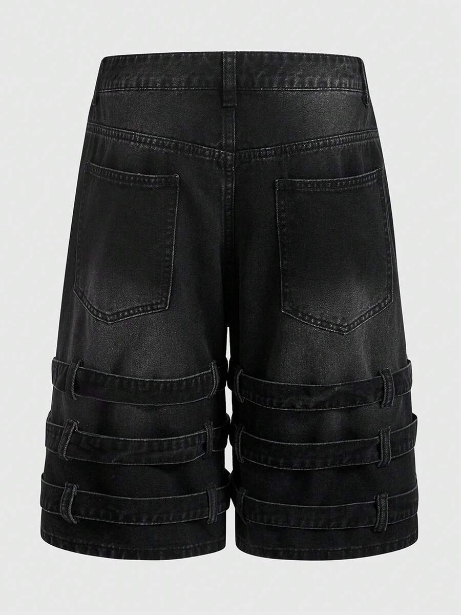 Street Life Shorts en jean amples et décontractés avec poches et multi-sangles pour hommes