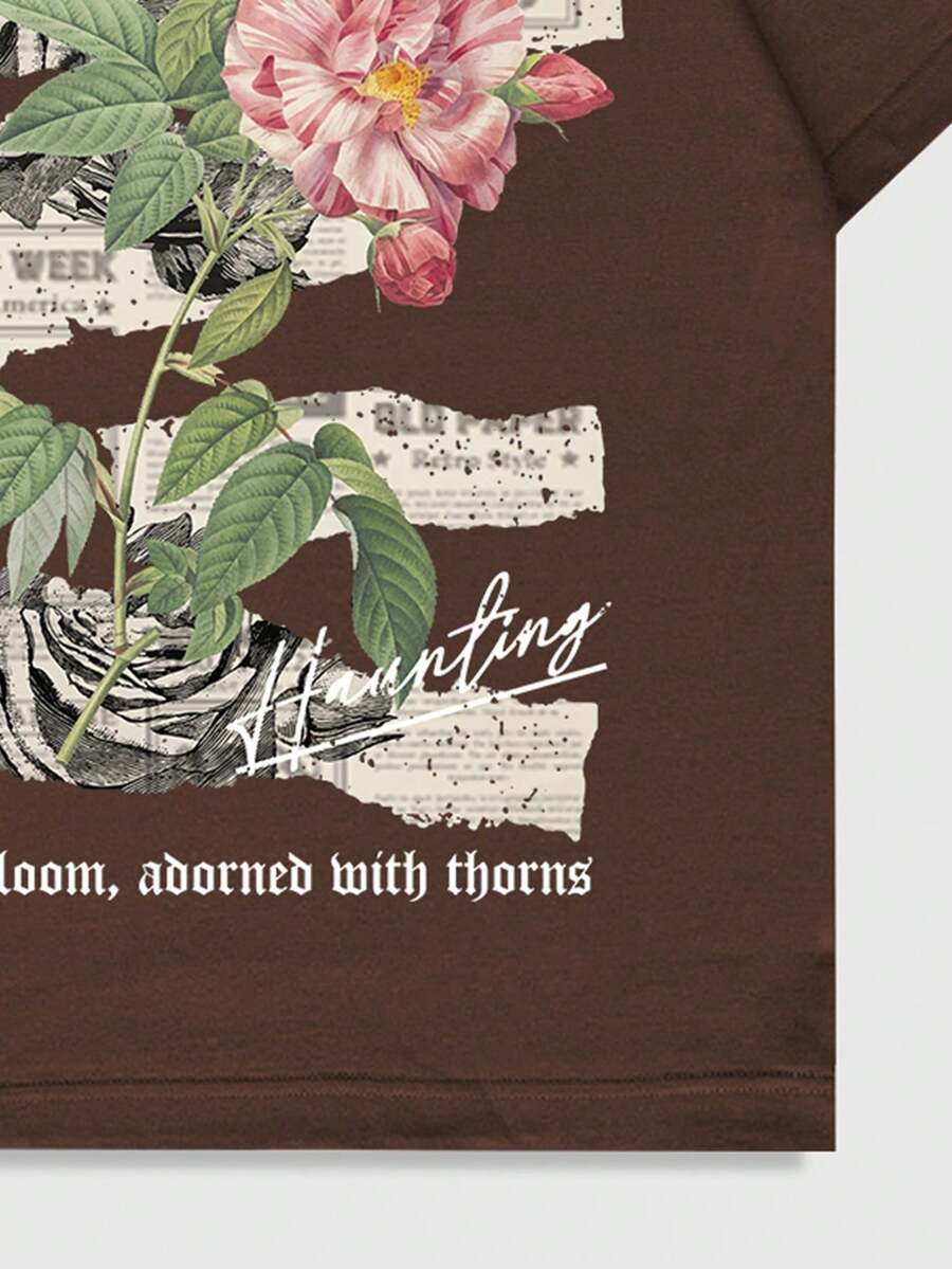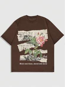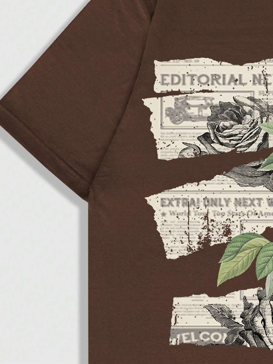 Street Life T-shirt À Manches Courtes Imprimé Pour Hommes Avec Des Journaux Et Des Fleurs
