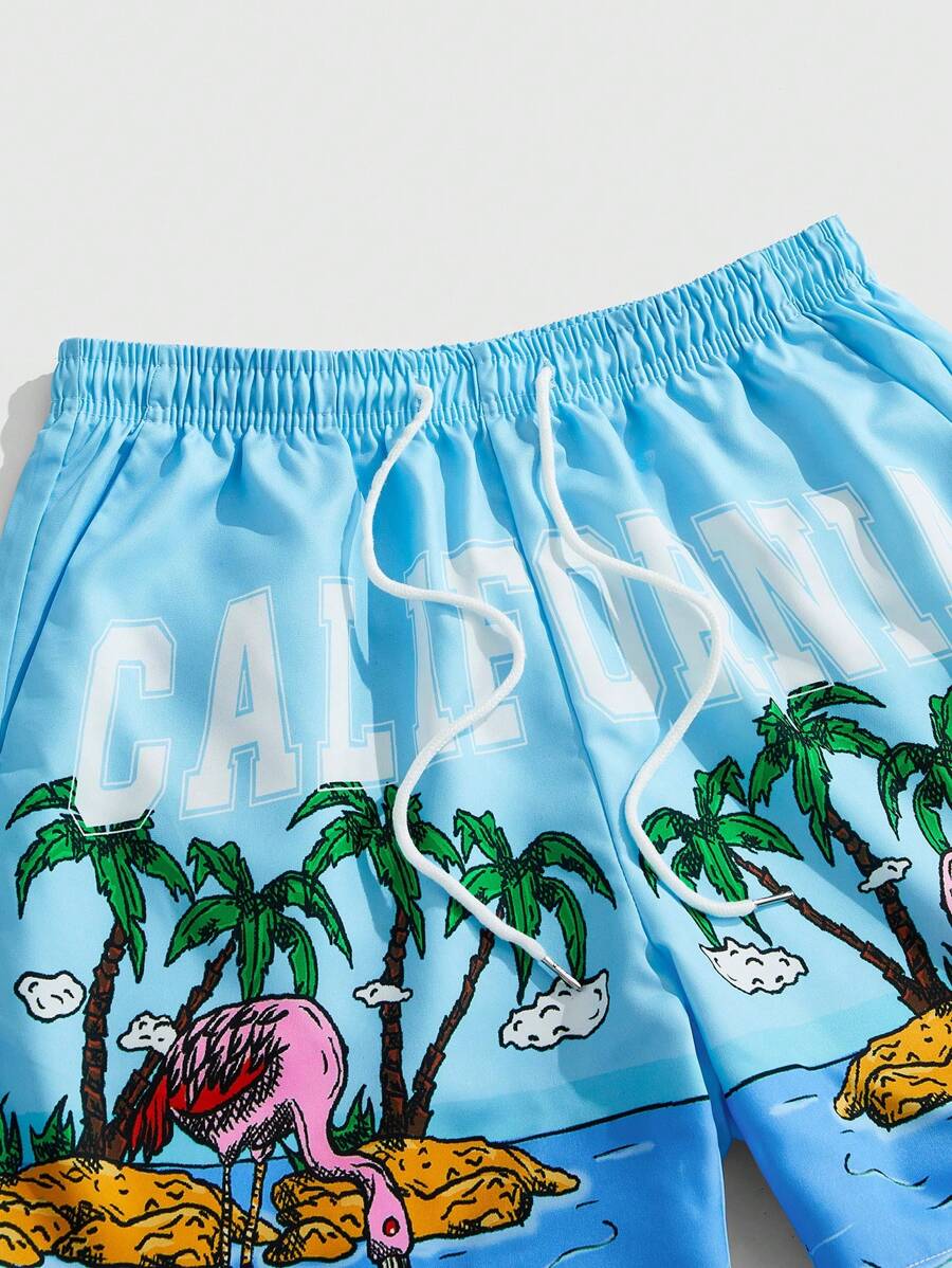 Street Life Short casual homme avec cordon de serrage à la taille, imprimé palmier