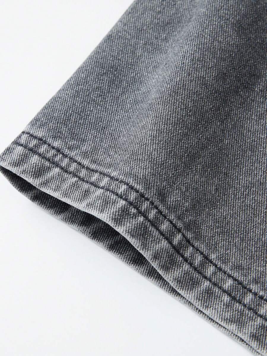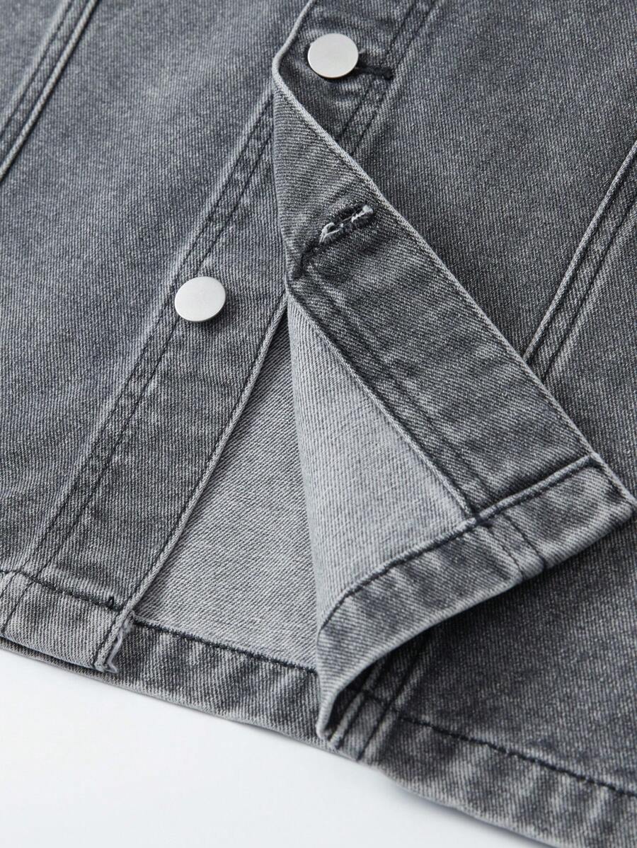 Street Life Chemise en jean décontractée à une rangée de boutonnage pour hommes, à ourlet effiloché et patchwork, manches courtes