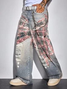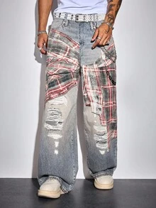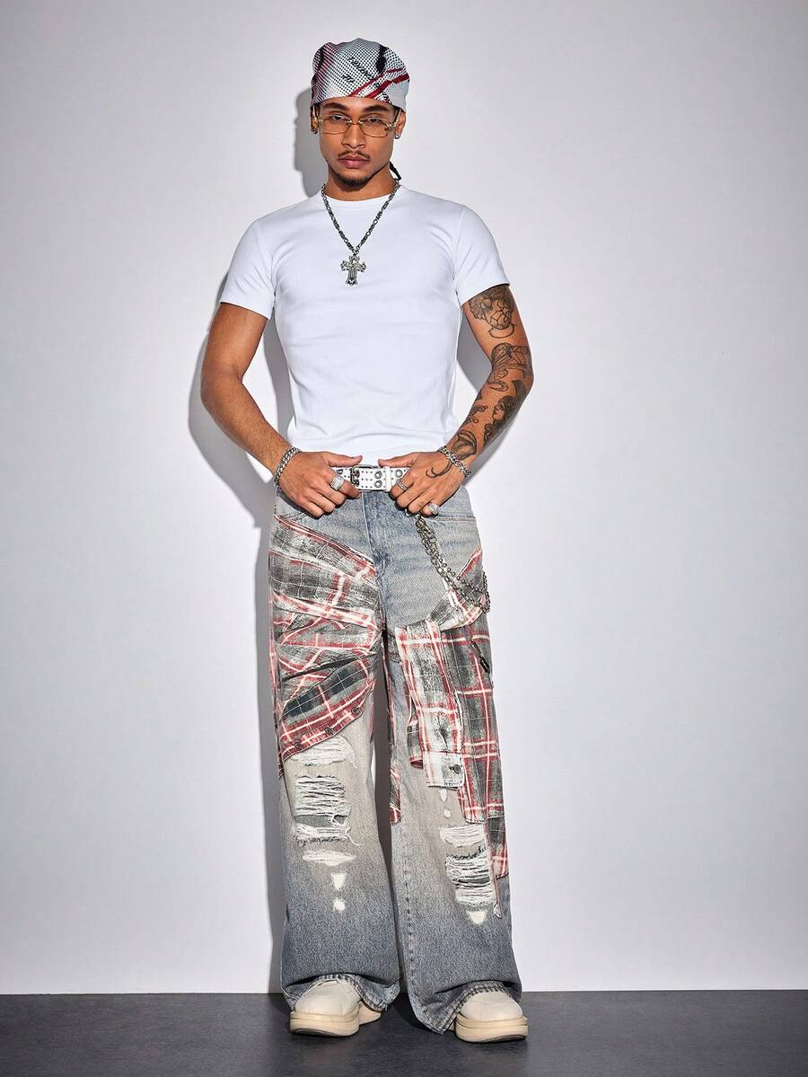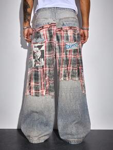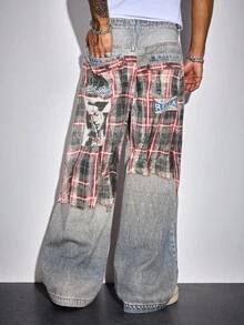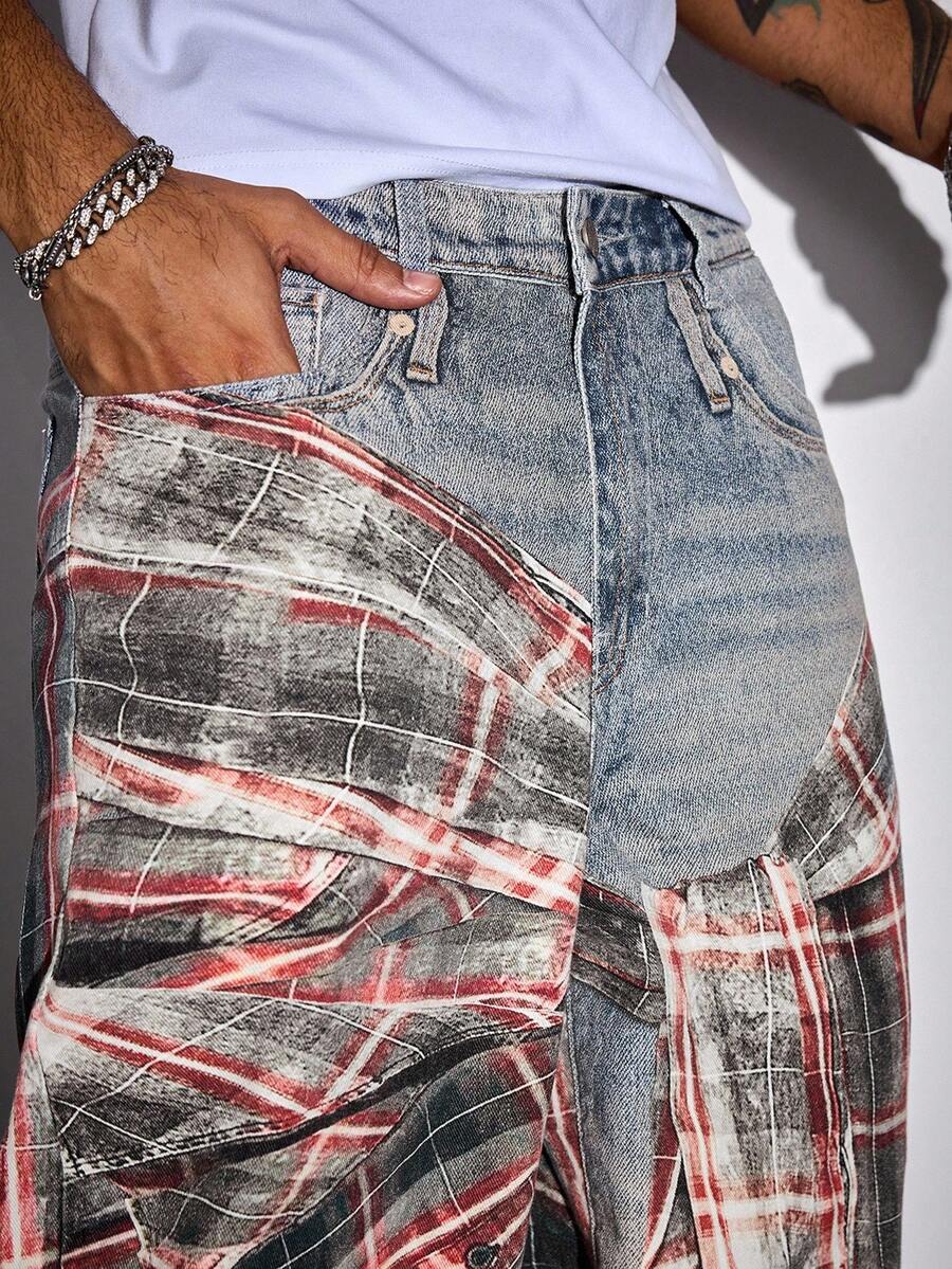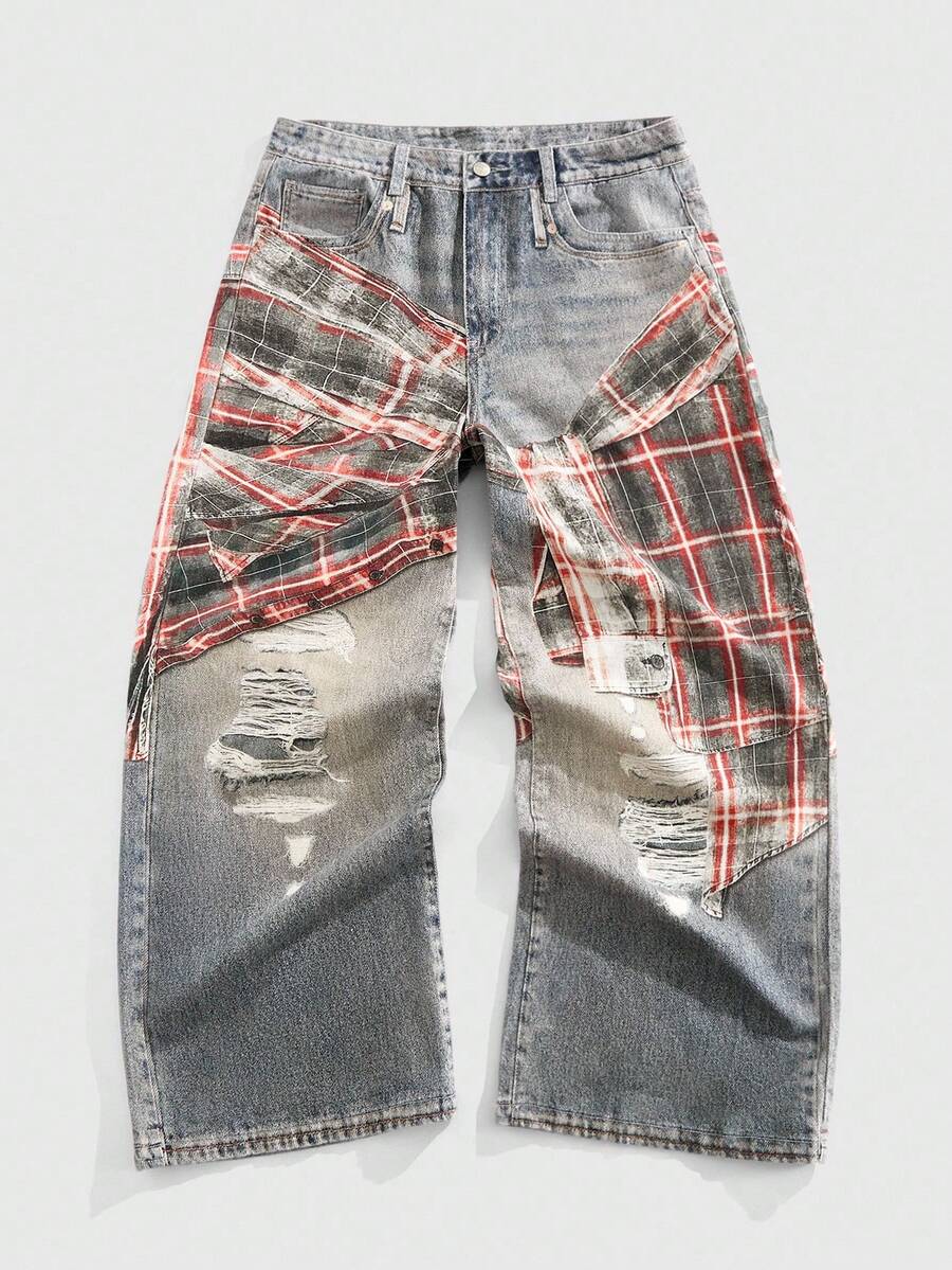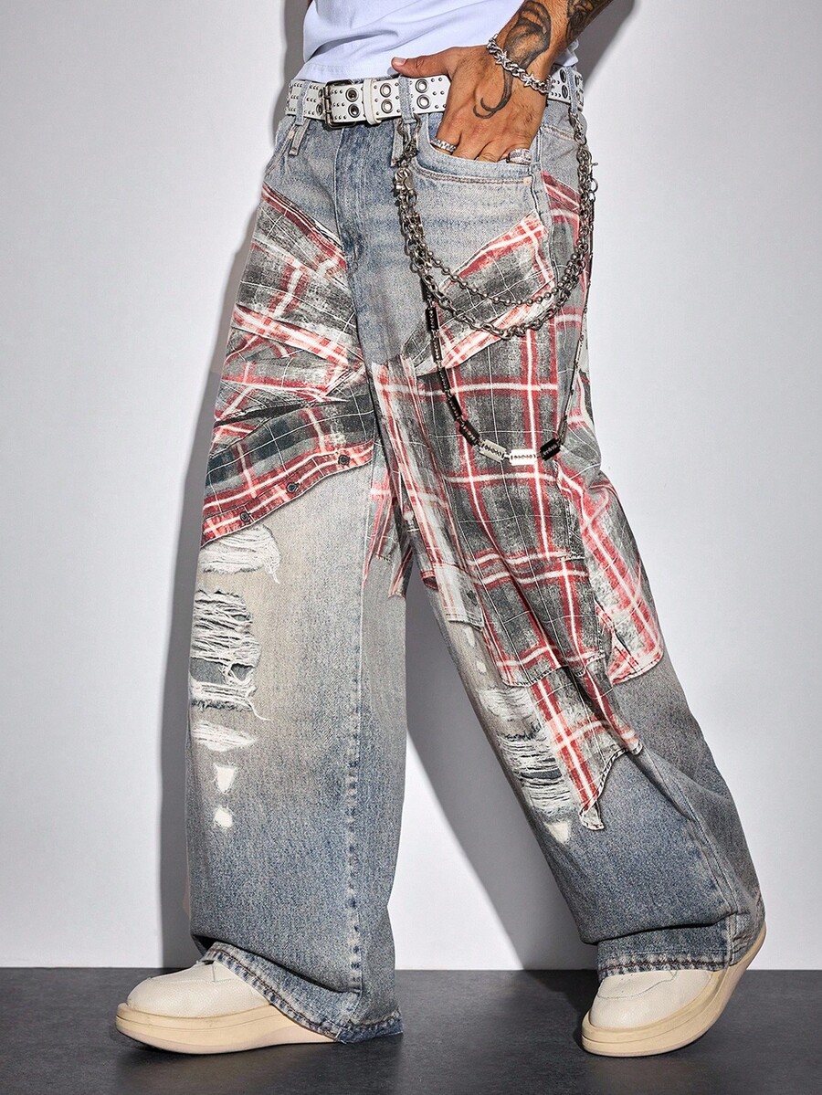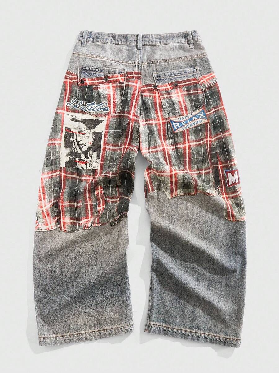 Street Life Jeans décontractés amples à imprimé à carreaux pour hommes, mode de rue