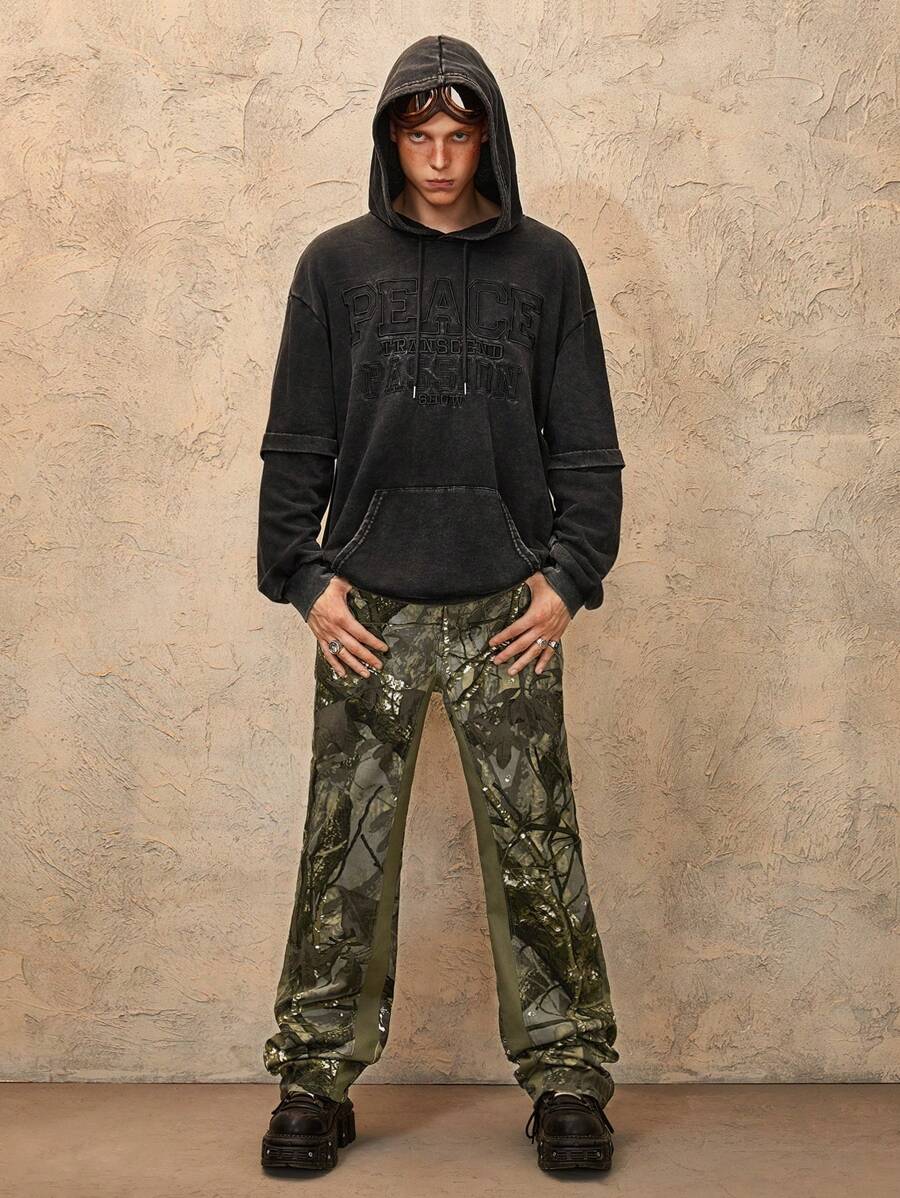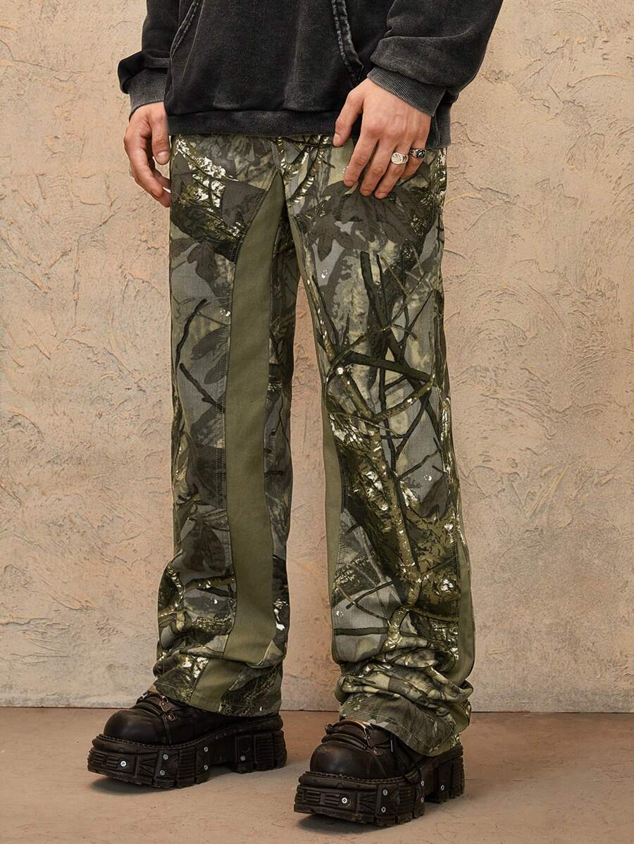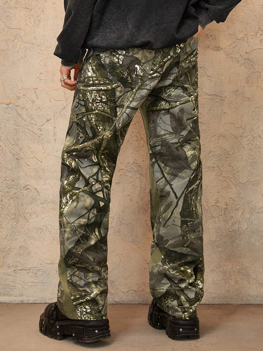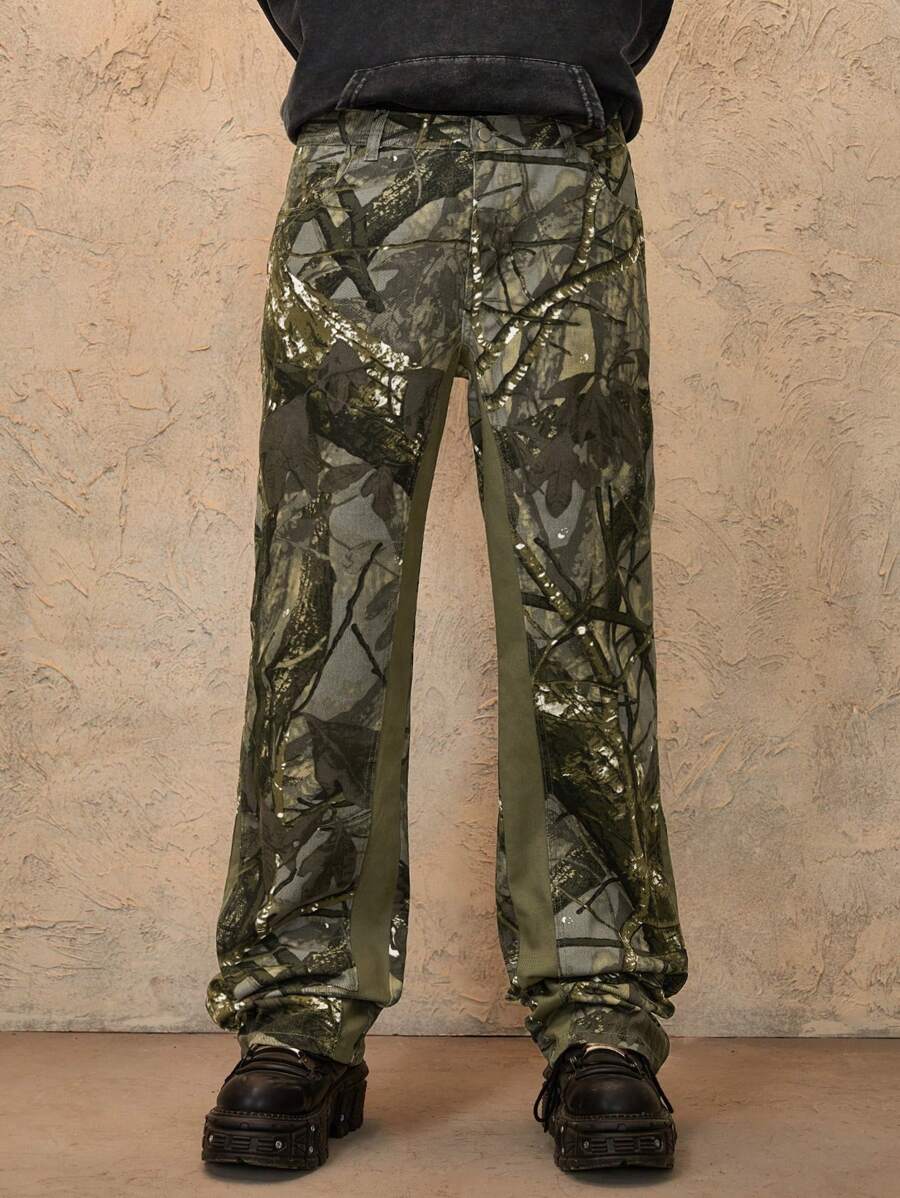 Street Life Jeans décontractés à pattes évasées avec imprimé de branche pour homme