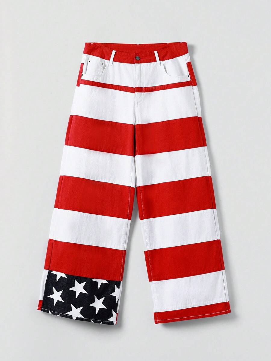 Street Life Jeans décontractés à coupe ample avec motif du drapeau américain pour hommes