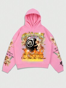 Street Life sweat-shirt à capuche ample à imprimé de portrait d'homme, avec graphique XOXO/Baisers/Cupidon/Ange