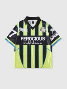 Prep Chemise polo à manches courtes pour hommes avec imprimé lettres et rayures, jersey de sport