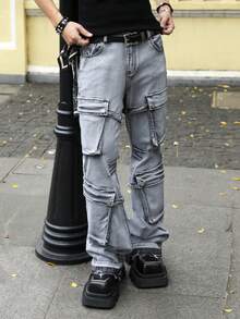 Street Life Jeans cargo en denim polyvalent et décontracté pour hommes