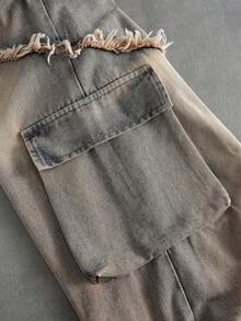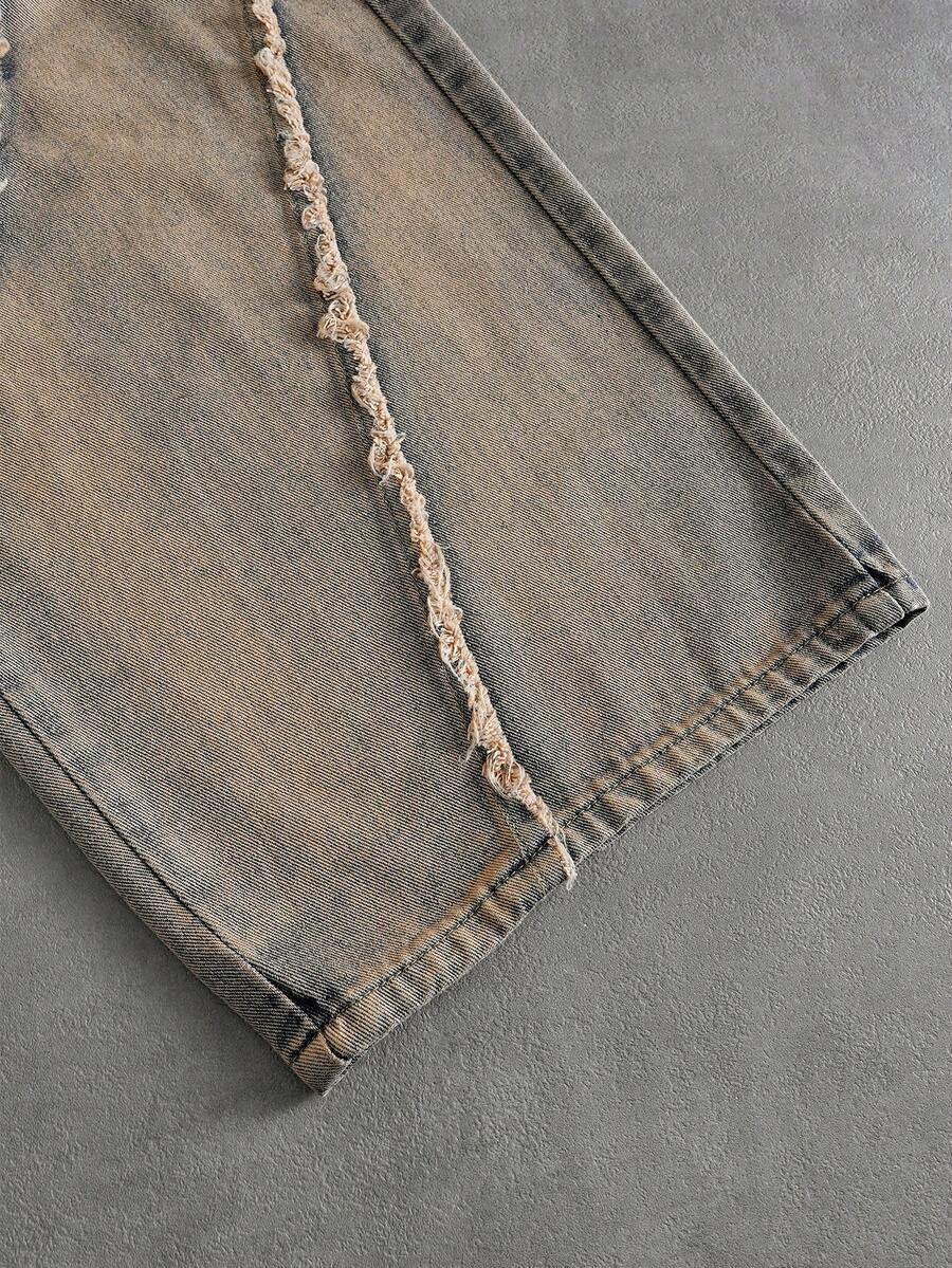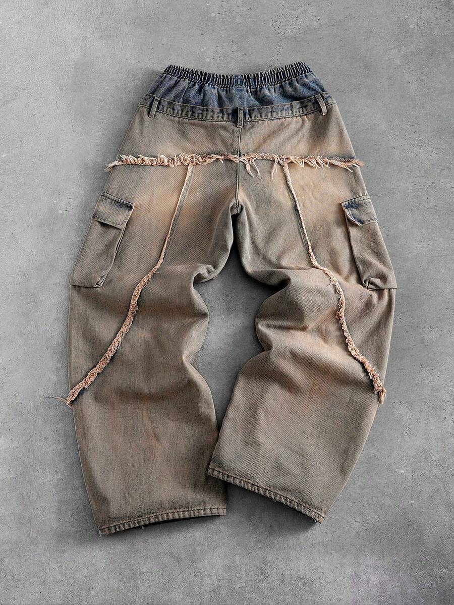 Street Life Jeans délavés et déchirés à coupe ample avec double ceinture pour hommes