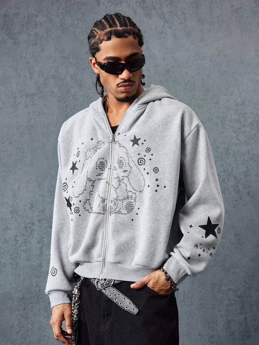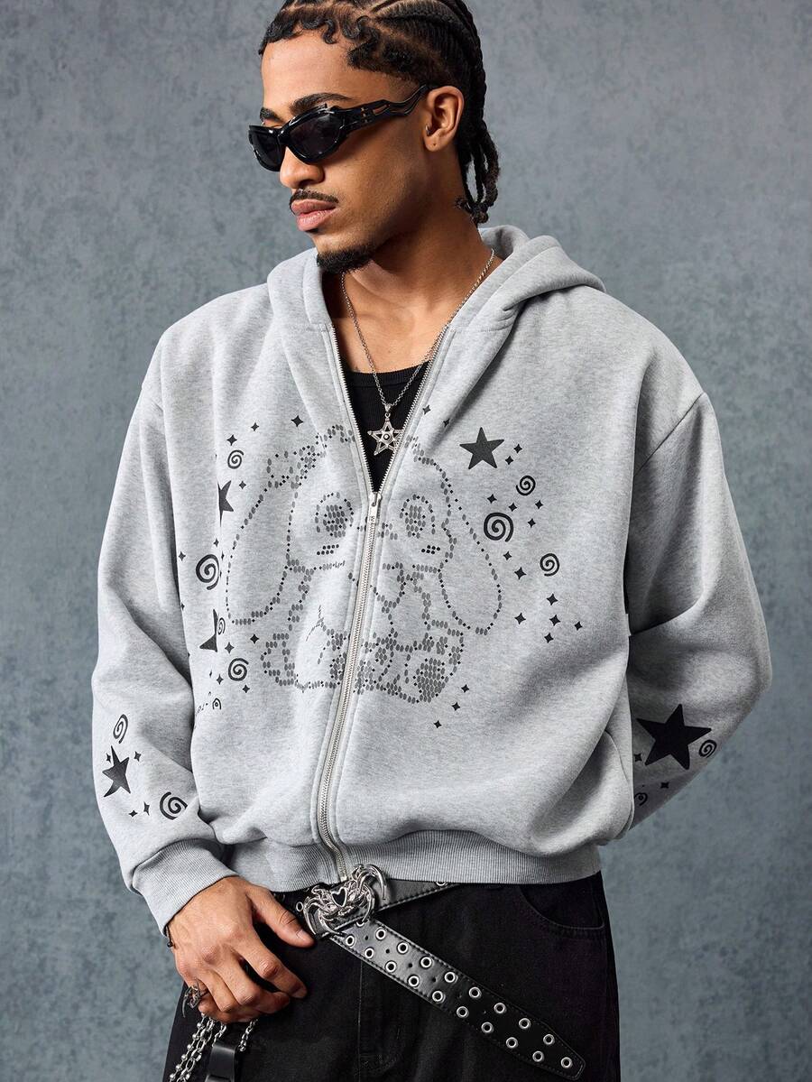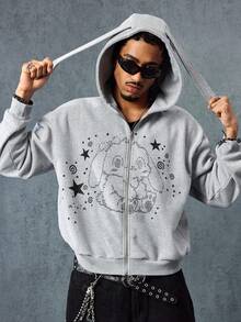 Street Life sweat-shirt à capuche avec oreilles de lapin pour hommes, imprimé minimaliste, sweat-shirt à manches longues