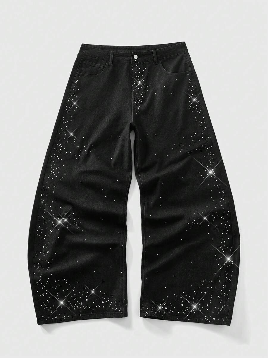 Street Life Jeans amples et décontractés pour hommes avec poches ornées de strass