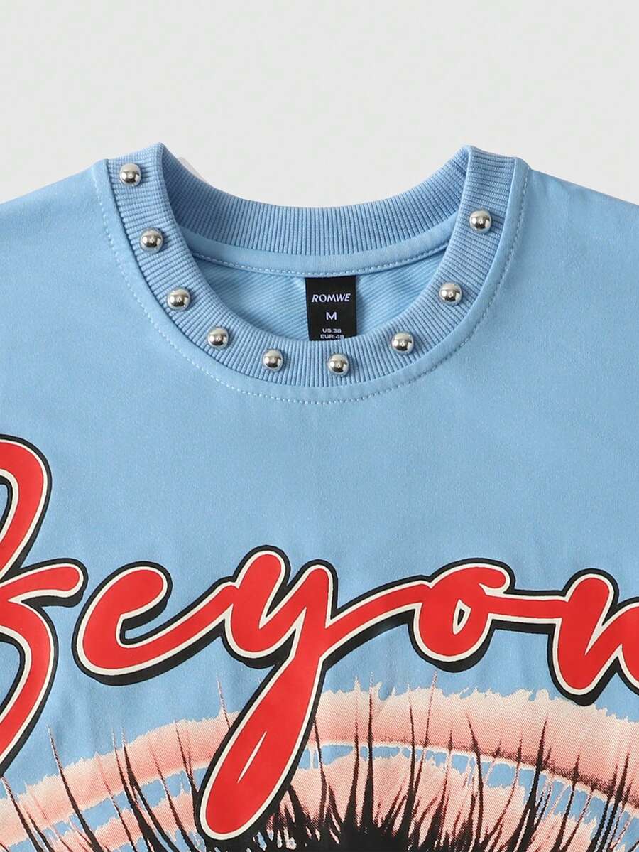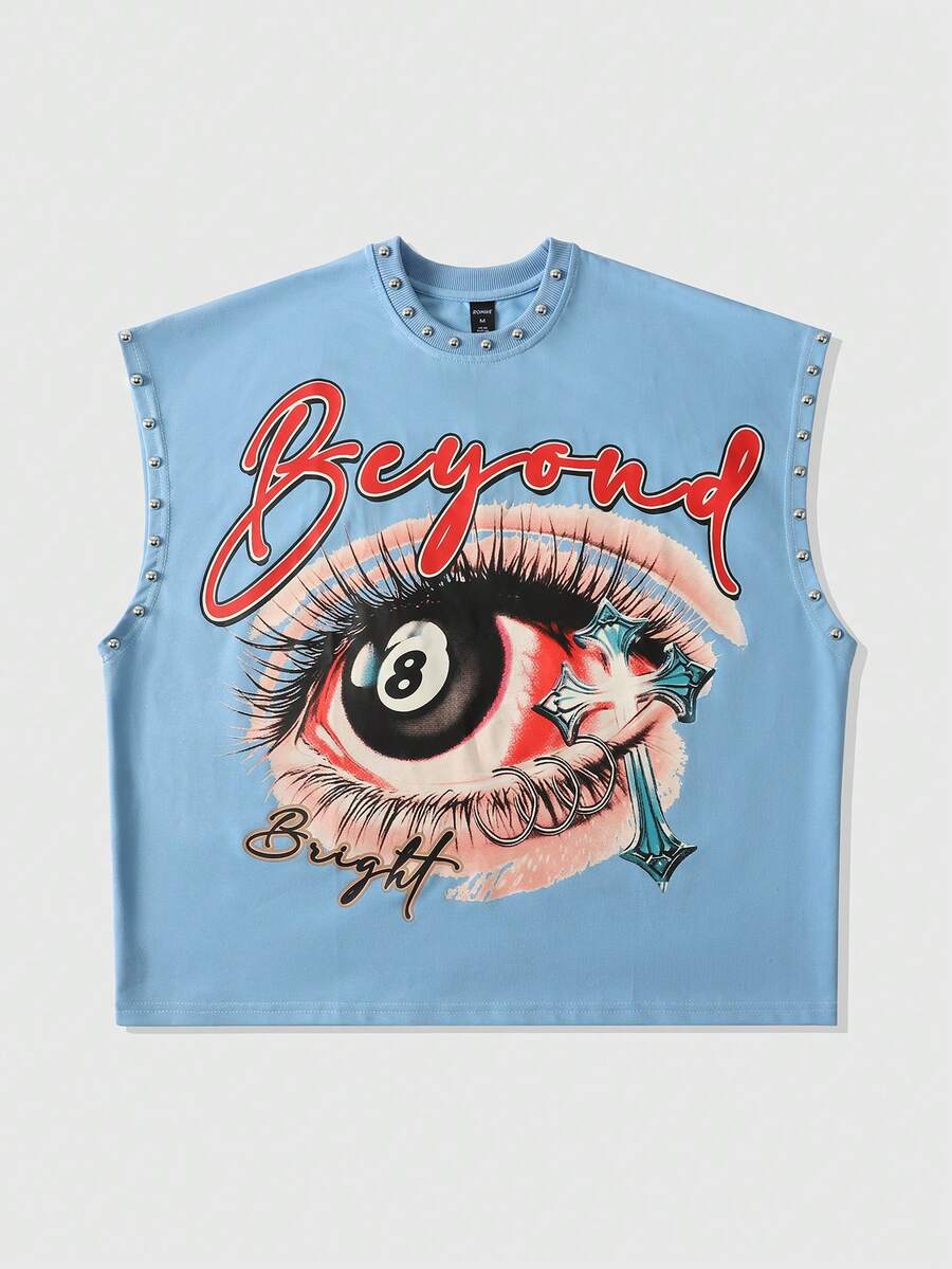 Street Life Débardeur décontracté à col rond pour hommes, imprimé de rivets, style mode, ample, pour l'été