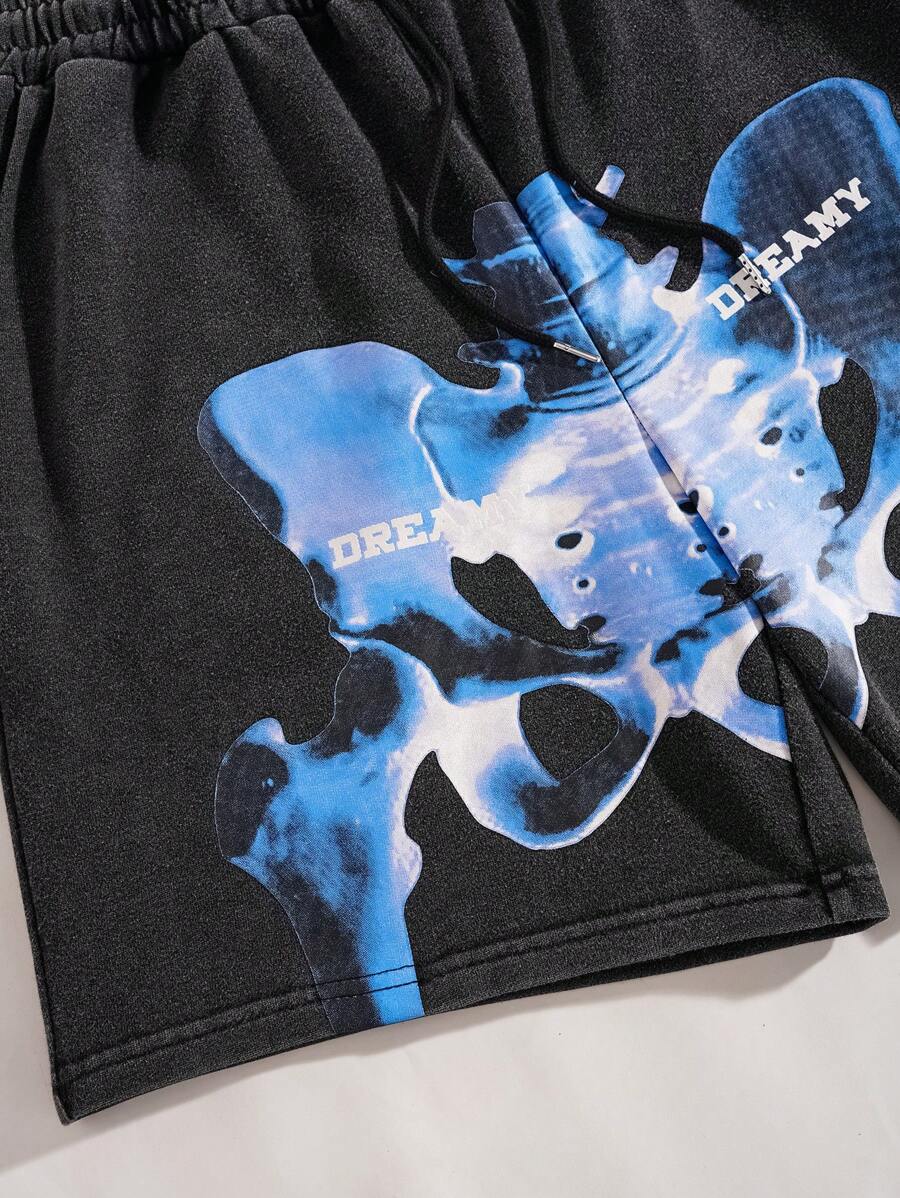 Street Life Short décontracté à cordon de serrage avec imprimé squelette pour hommes, pour l'école, Halloween et l'été