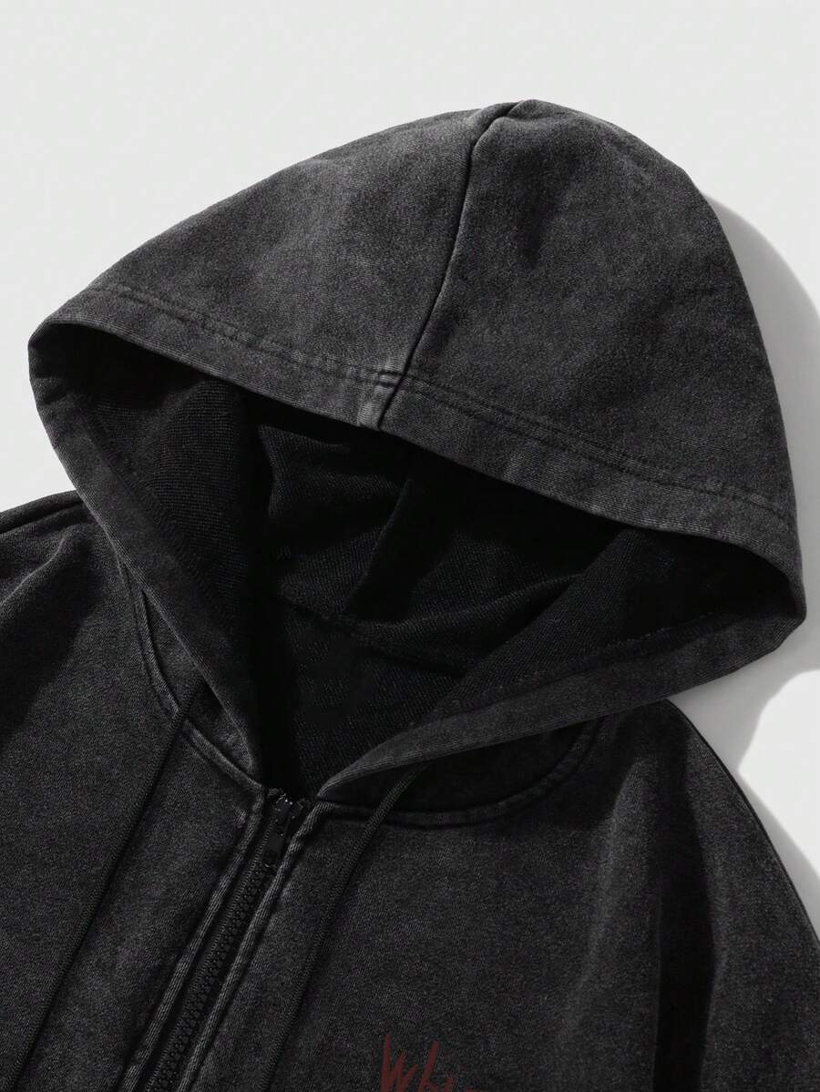 Street Life sweat-shirt à capuche zippé avec slogan et effet délavé pour hommes