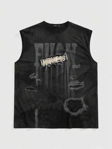 Street Life Débardeur pour hommes avec slogan, appliqué, broderie graphique et imprimé numéro de rue, style années 2000