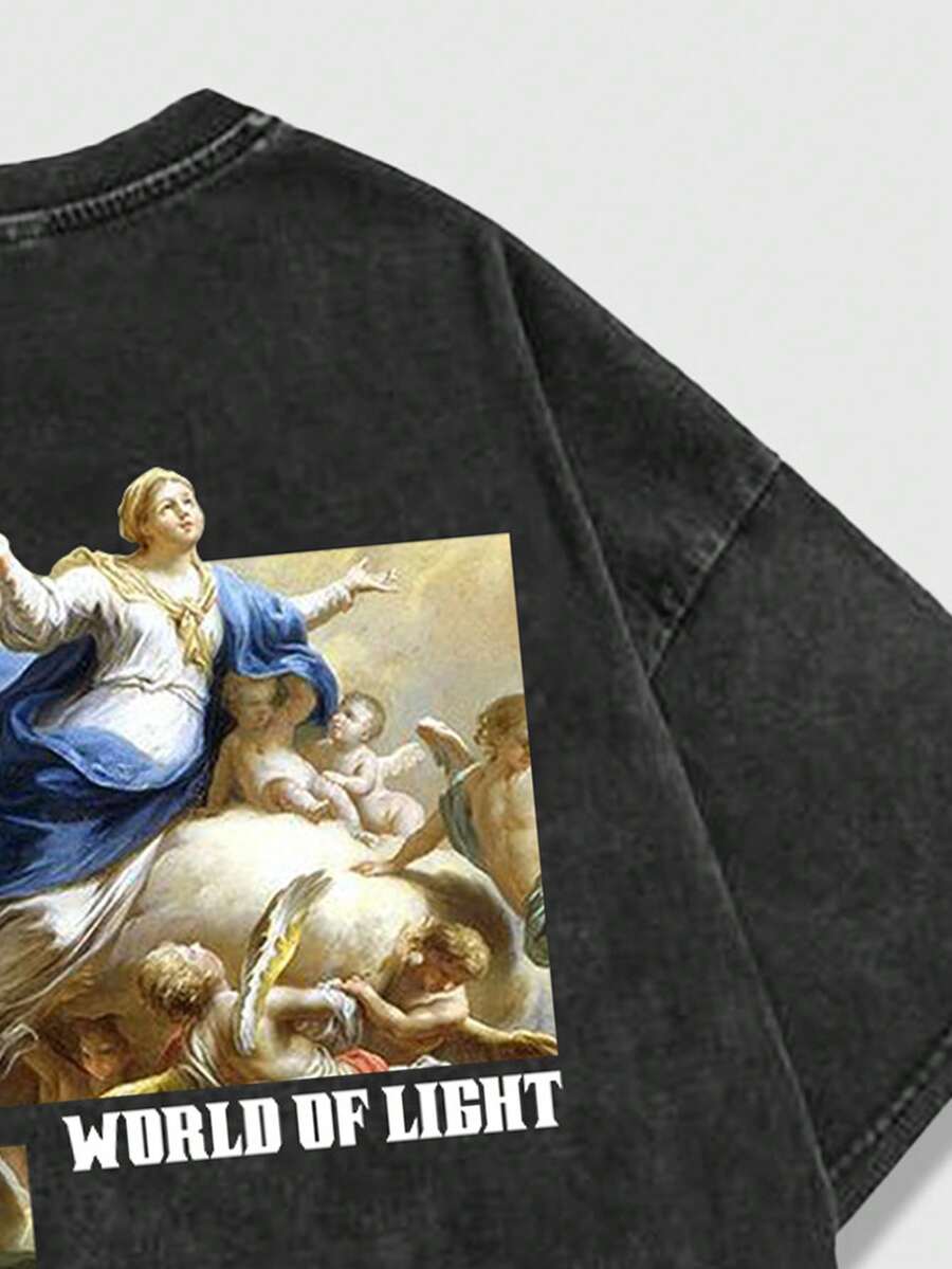 Street Life T-shirt à manches courtes pour hommes avec imprimé étoile à cinq branches lavé à l'acide, convient pour le port quotidien au printemps et en été