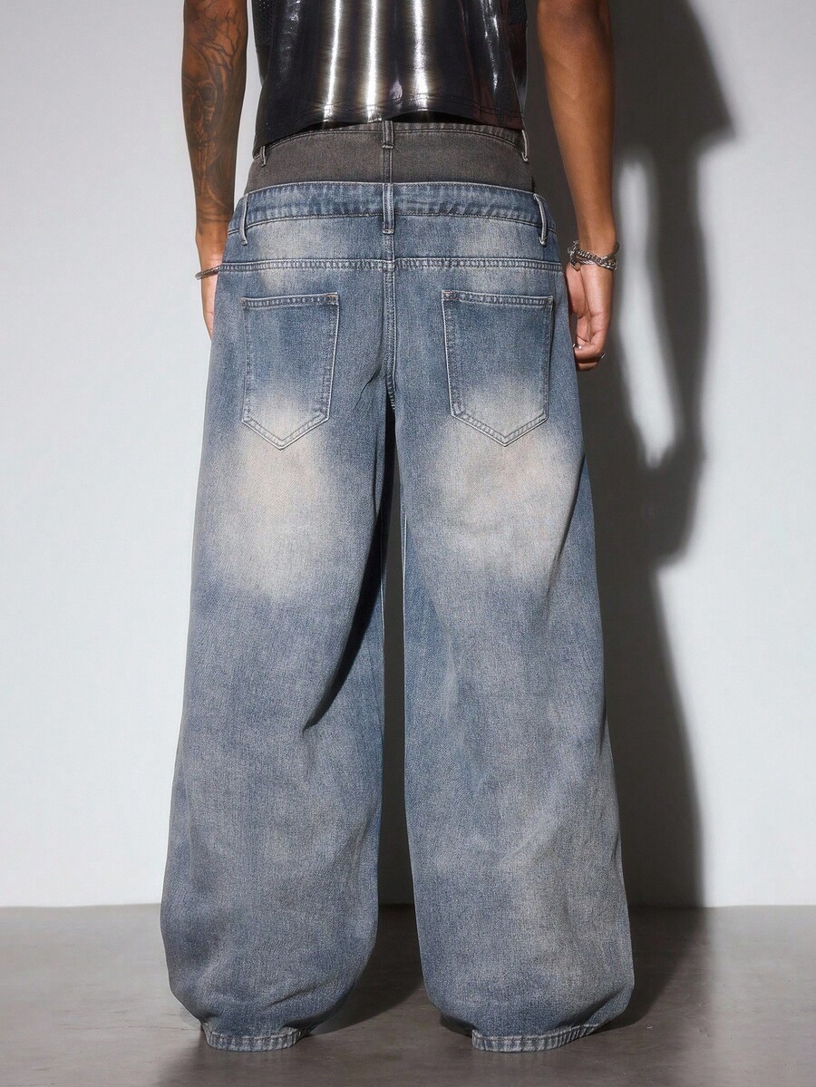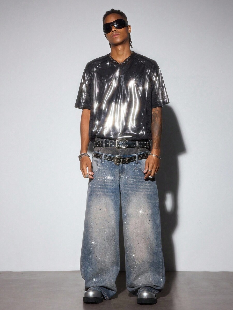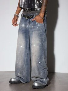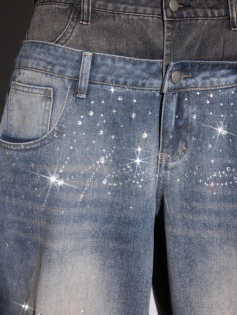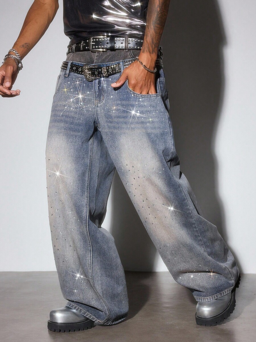 Street Life Jeans de mode de rue pour hommes avec double ceinture et poches ornées de strass