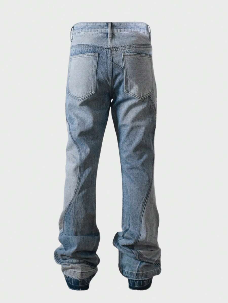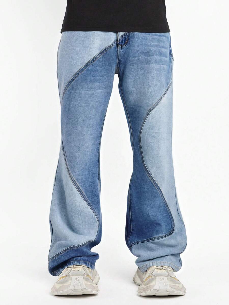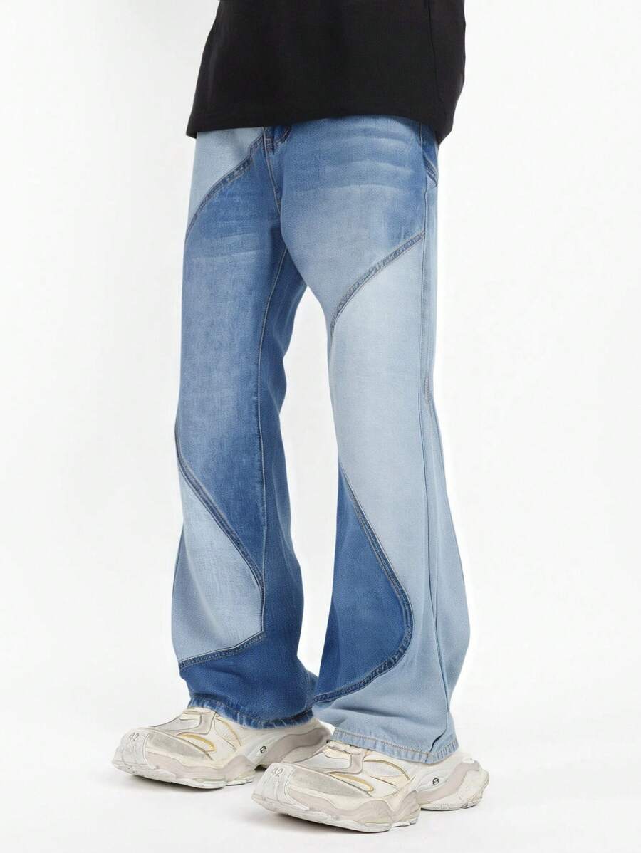 Street Life Jeans décontracté à boutons et poches, style patchwork, pour un port quotidien pour hommes