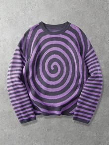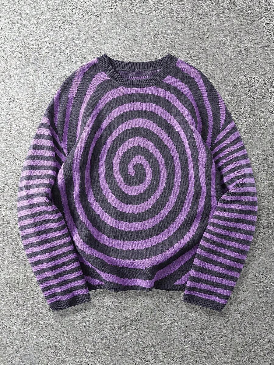 Street Life Pull col rond rayé polyvalent à manches longues pour hommes, convient pour le port quotidien en automne/hiver