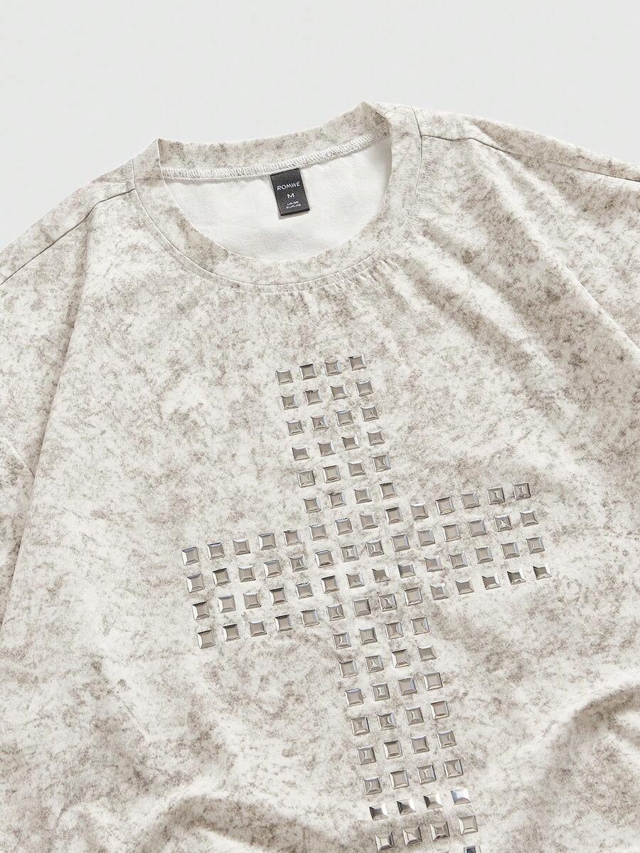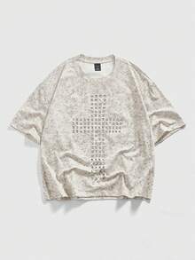 Street Life T-shirt à la mode pour hommes en été avec ornements de strass en forme de croix
