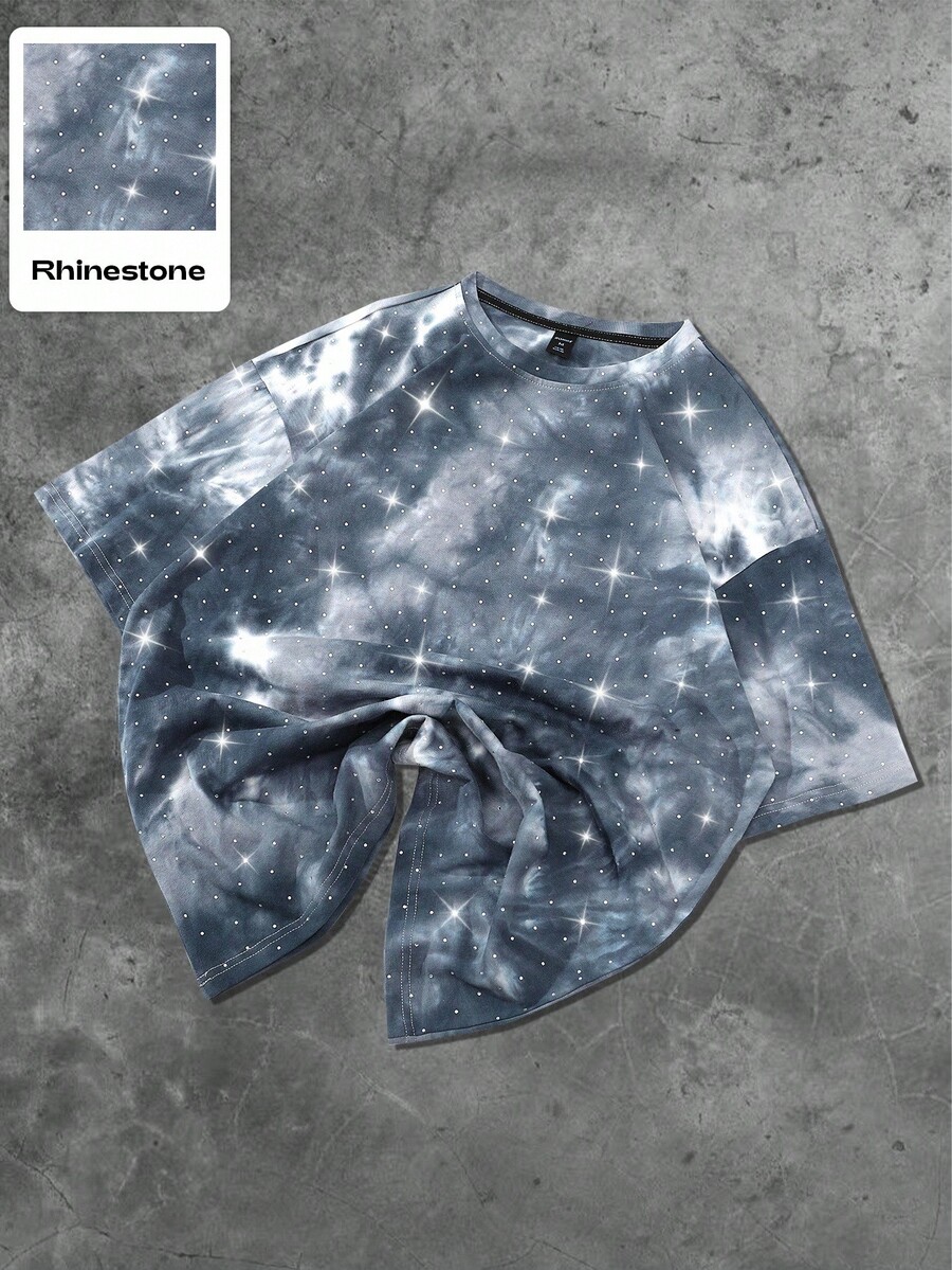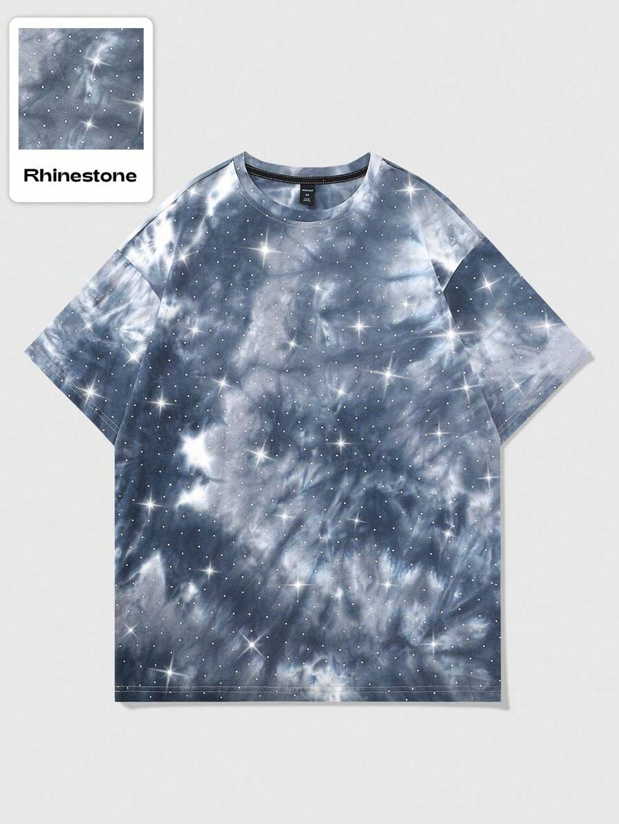 Street Life T-shirt à manches courtes streetwear pour hommes avec strass et tie-dye