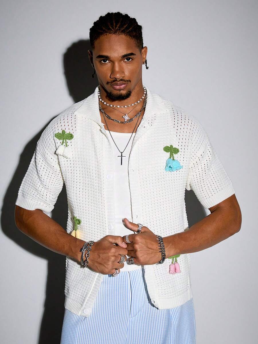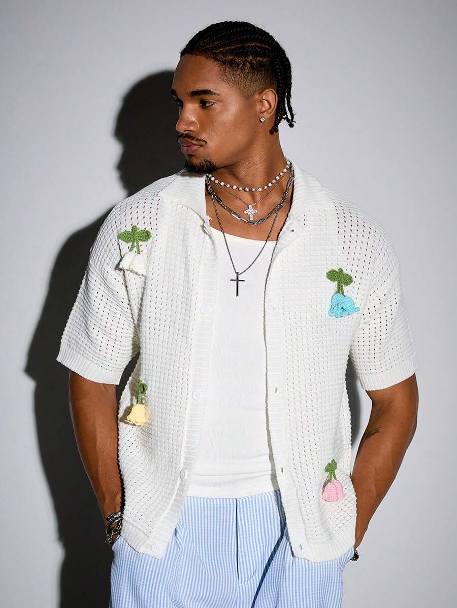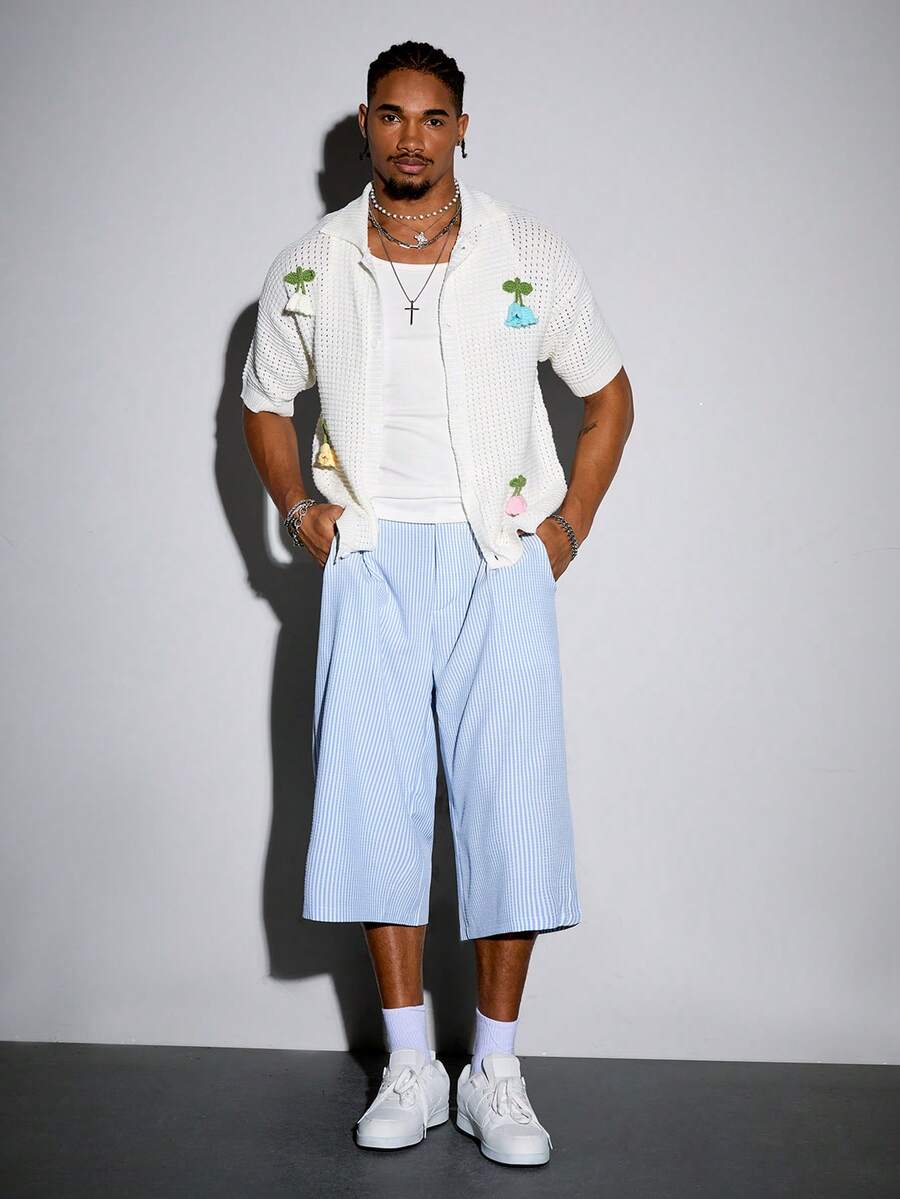 Street Life Top en tricot à patte d'épaule oversize et boutonnage simple pour homme, pour l'été