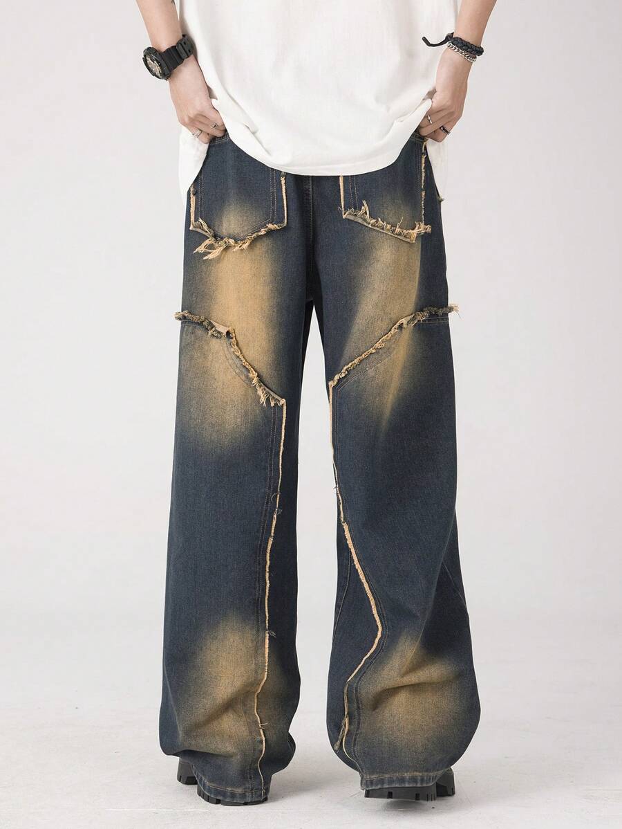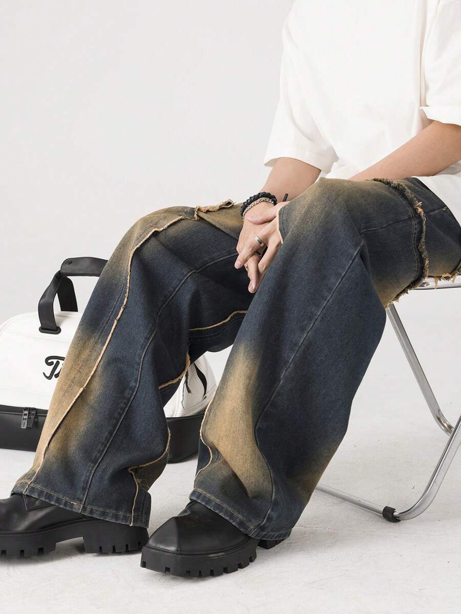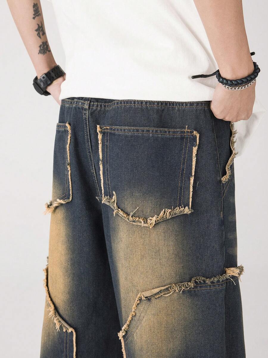 Street Life Pantalon En Jean Vintage À Patchwork Pour Hommes, Convient Aux Vêtements De Les Jours De Printemps Et D'été
