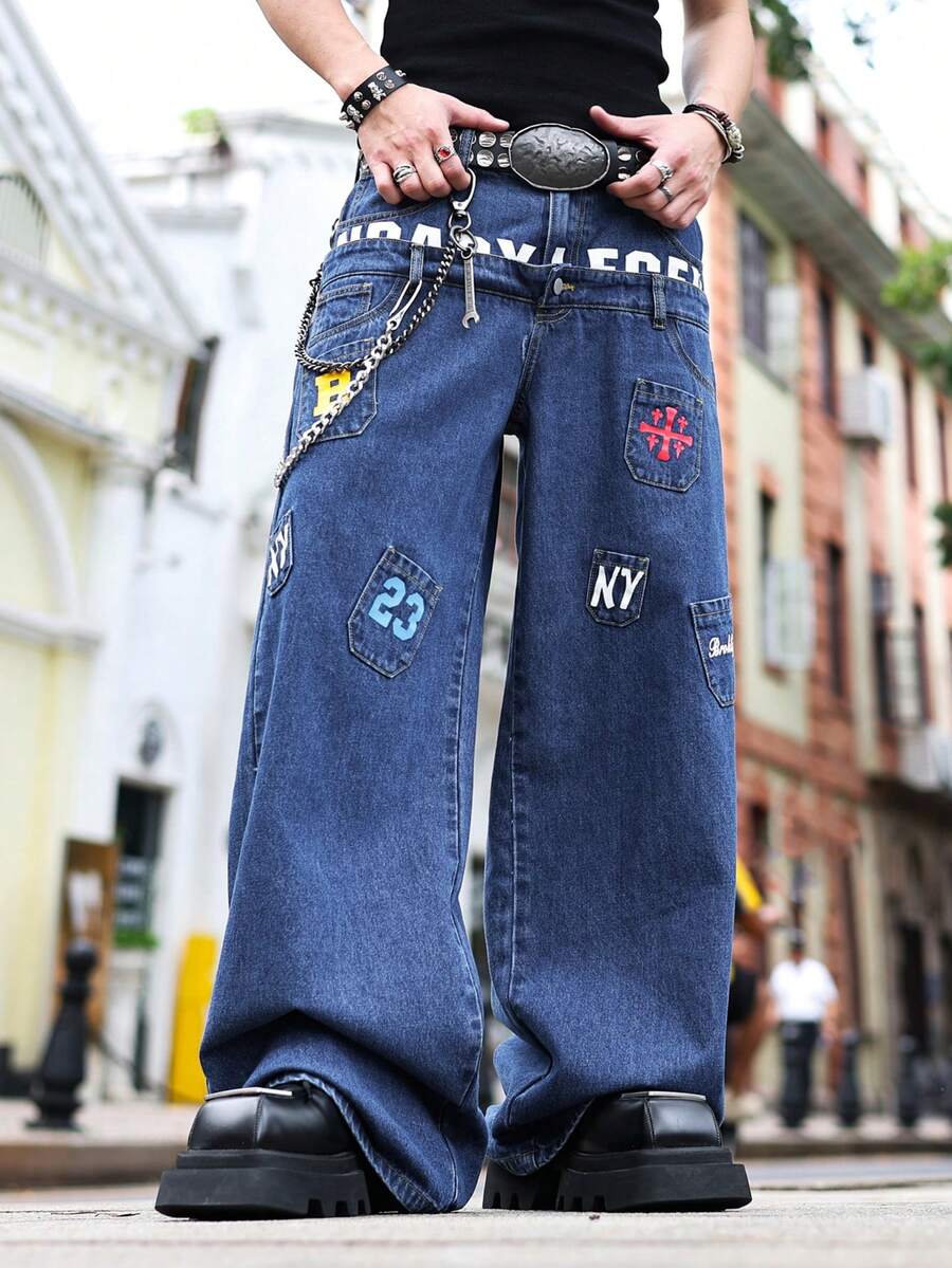 Street Life Jeans décontractés pour hommes à double ceinture et jambes larges