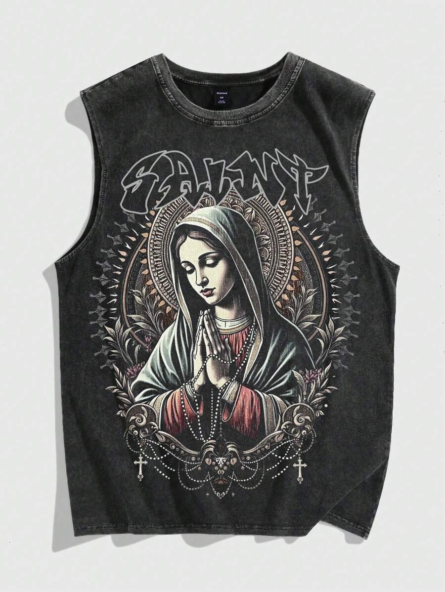 Street Life Débardeur décontracté ample à col rond avec impression lettre lavée pour hommes
