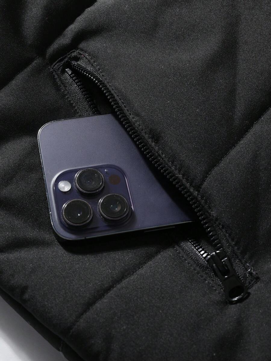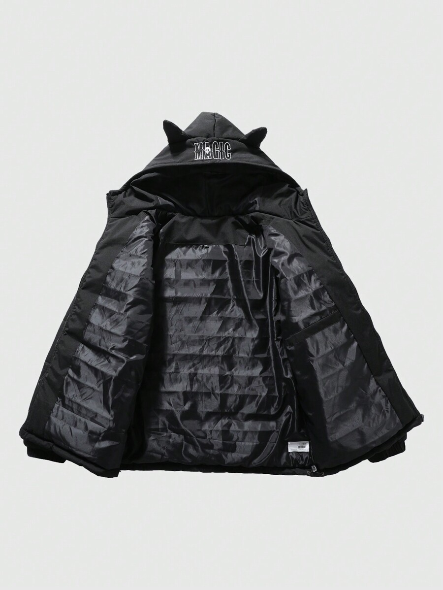 Street Life Manteau décontracté matelassé à capuche avec fermeture zippée et imprimé lettrage pour hommes en hiver