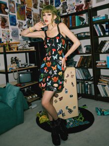 Street Life Robe champignon & papillon à imprimé en dentelle