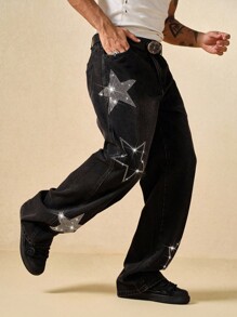Street Life Jeans en denim à la mode ornés de strass en forme de pentagramme