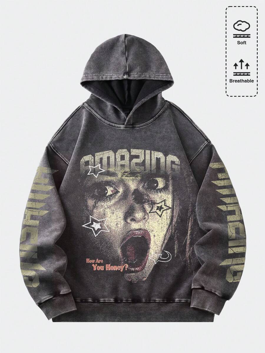 Street Life Sweat-shirt à capuche vintage imprimé lettres et chiffres pour femmes grandes tailles