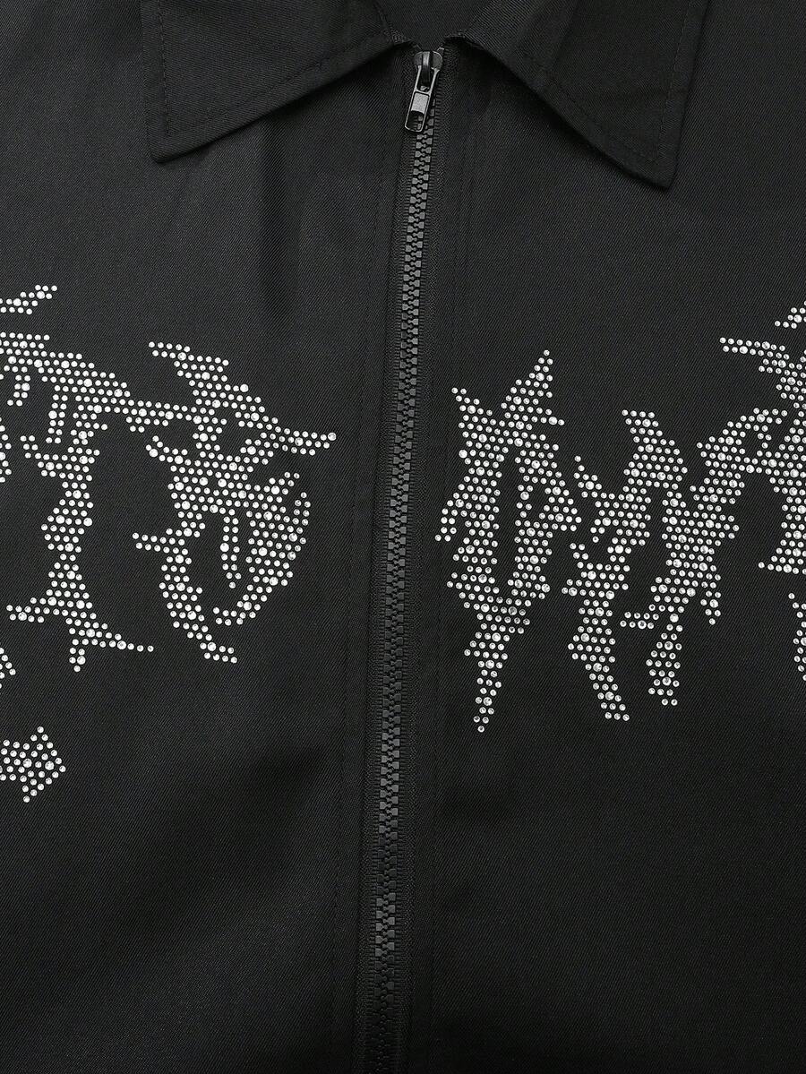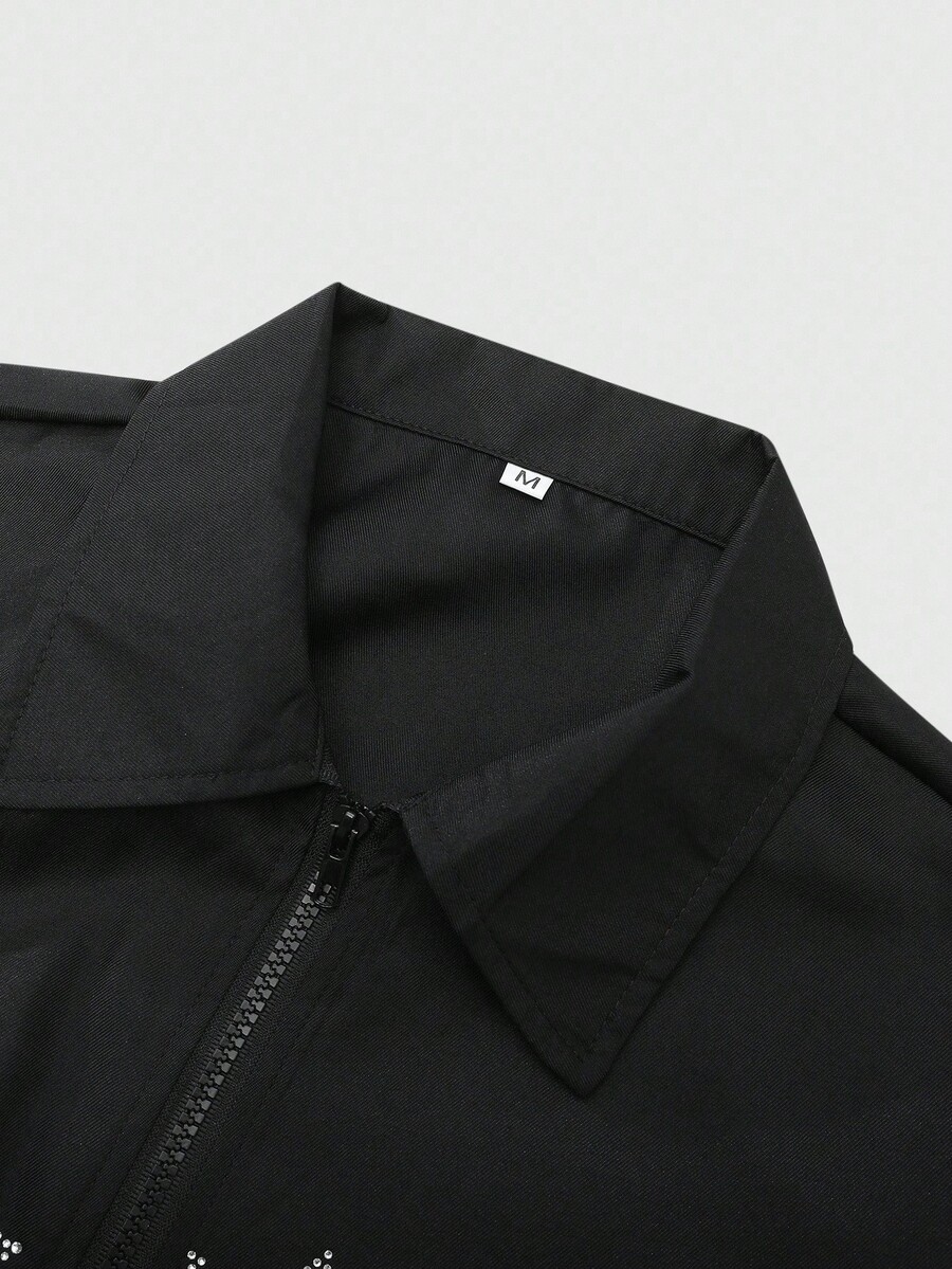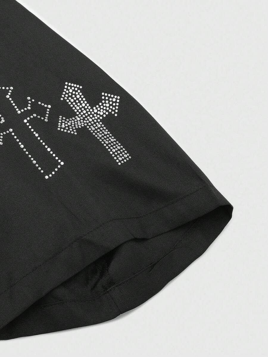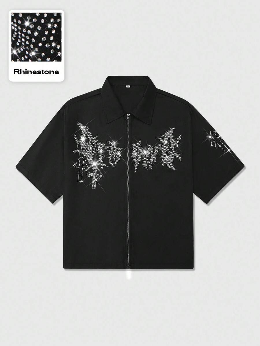 Goth Chemise d'été décontractée à zip ornée de strass graphique pour hommes, à la mode