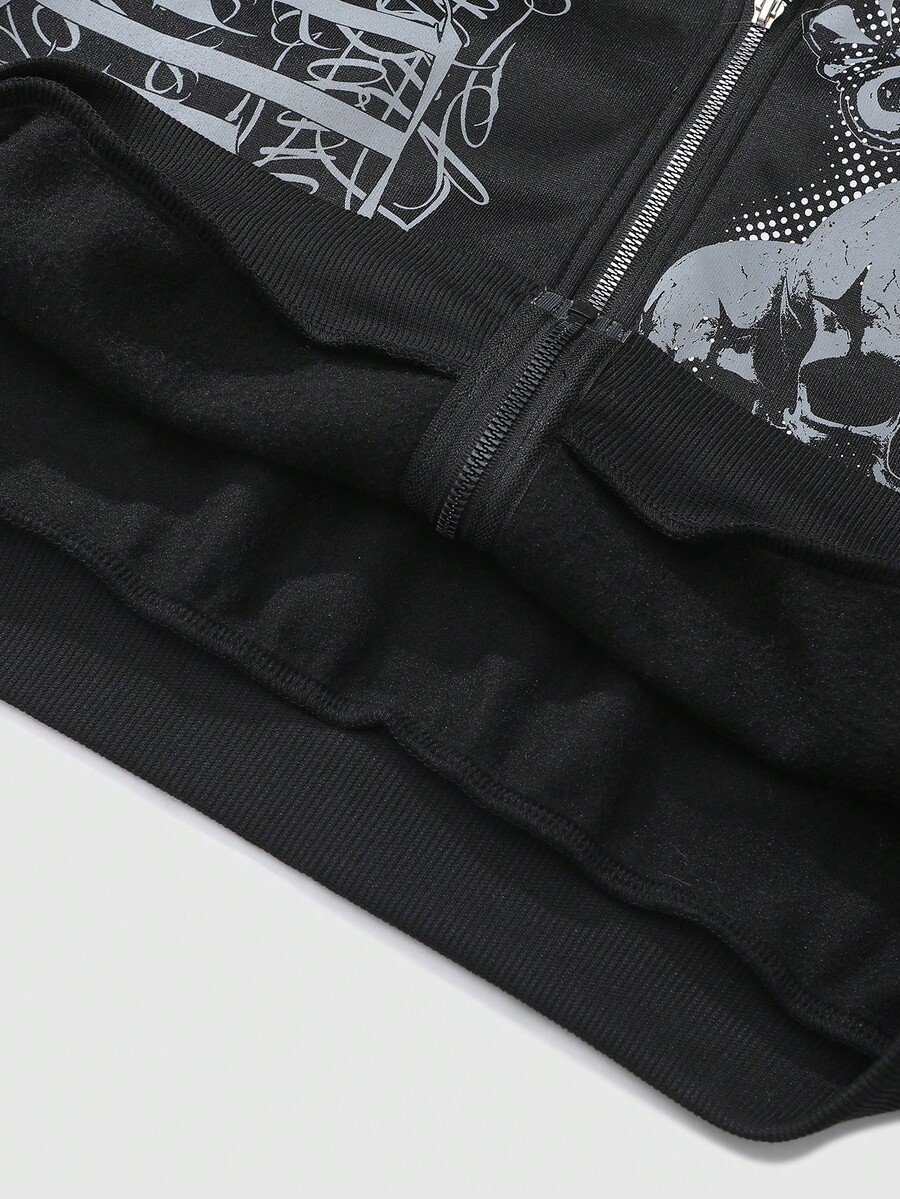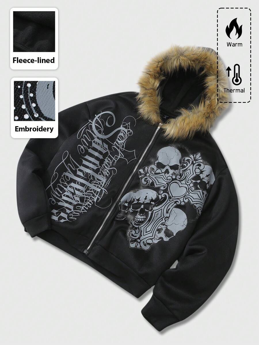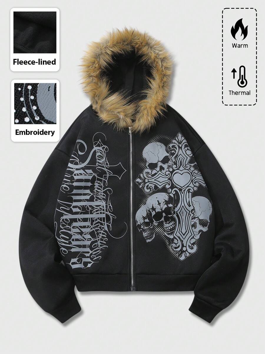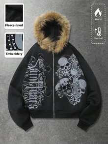 Street Life sweat-shirt à capuche doublé thermique à imprimé crâne, porter casual au quotidien, automne/hiver