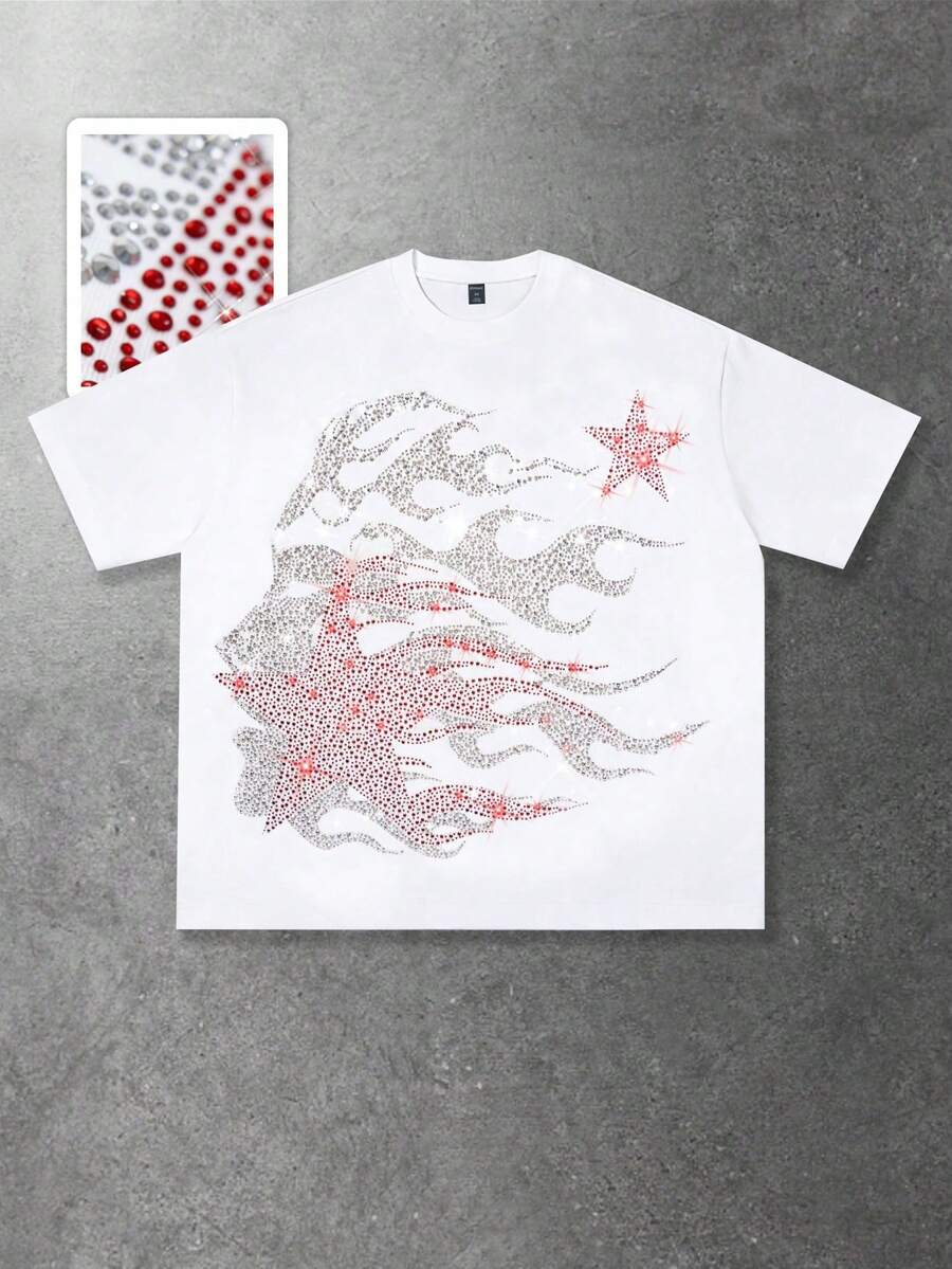 Street Life T-shirt décontracté à manches courtes col rond avec graphique d'étoile en strass pour hommes