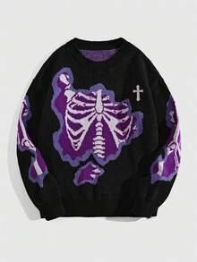 Street Life Pull-shirt décontracté à col rond à manches longues avec imprimé os pour adolescent garçon