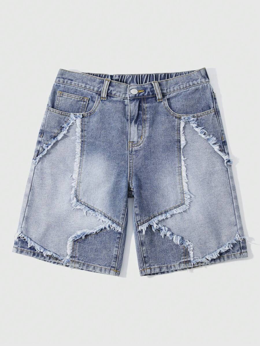 Street Life Short en jean décontracté avec poche oblique et patch étoile pour garçon adolescent