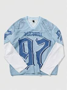 Street Life T-shirt décontracté de mode de rue sportive pour adolescent, imprimé numérique et lettres, col en V 2 en 1, printemps/automne