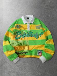 Street Life Sweat-shirt unisexe, texte en anglais américain et imprimé à texture rayée, style de rue, automne/hiver