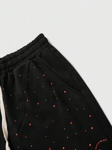 Street Life Pantalon de survêtement unisexe à jambes droites avec impression de strass en anglais américain de style de rue