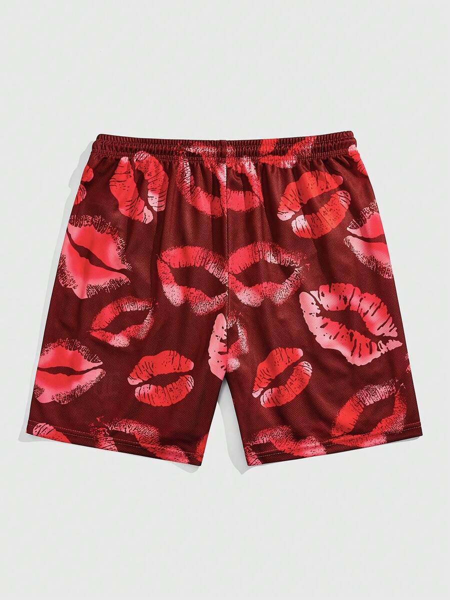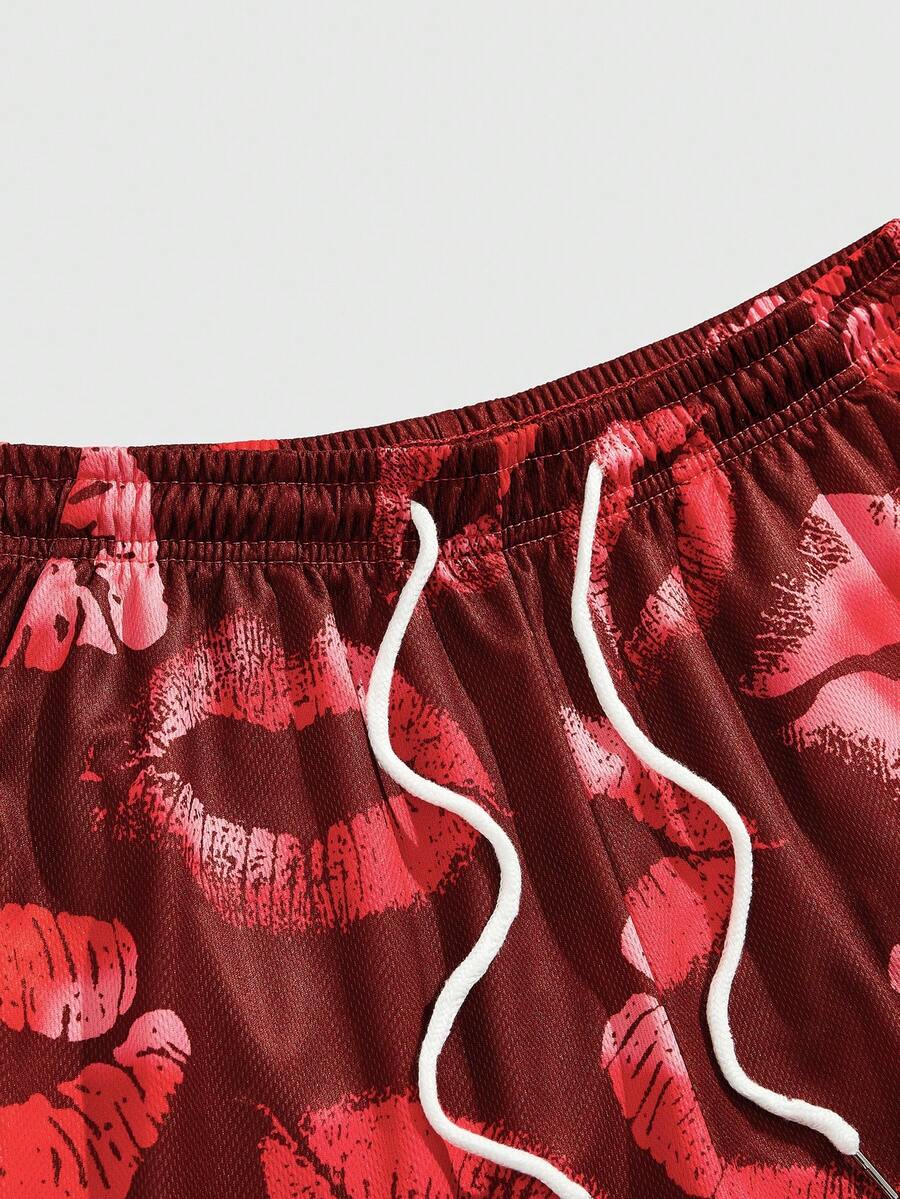 Street Life Short en maille respirant pour hommes avec imprimé pour la Saint-Valentin : Valentin/Amour/Couples/Cœur/XOXO/Baisers/Câlins et baisers/Sois à moi/Chéri/Bébé/Baiser/Lèvre/Cœur/Cupidon/Ange/Rose/Sourire/Papillon/Cerise/Fraise/Rose 3D/Fleur/Nœud