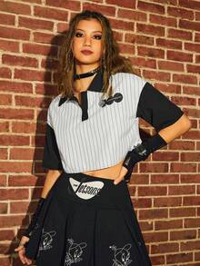 WB 100th | ROMWE Chemisier Court À Col Polo Rayé Avec Slogan Graphique