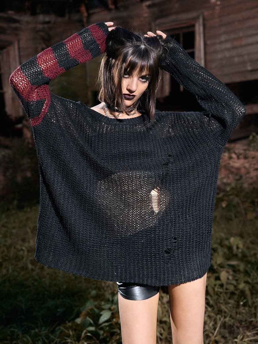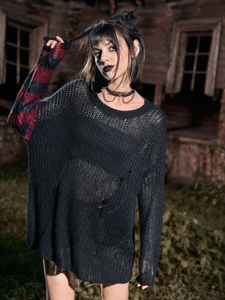 Pull déchiré à rayures