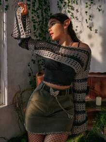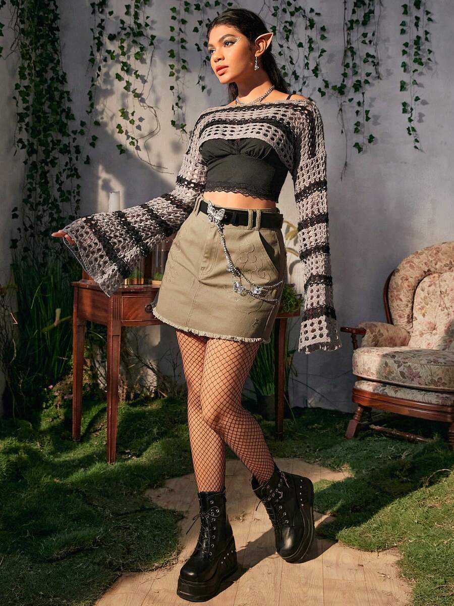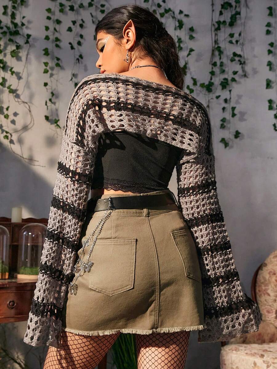 Fairycore Pull à rayures ajouré manches évasées
