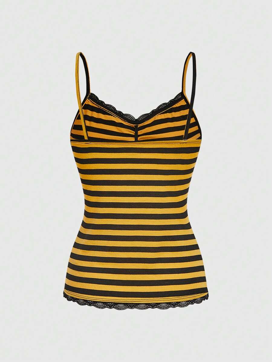 Camisole ajustée à patchwork de rayures et de dentelle