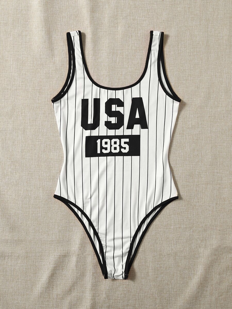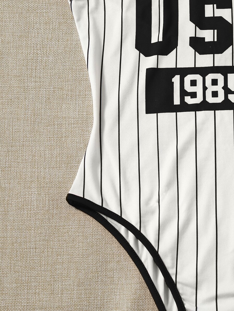Body À Rayures Et Graphiques De Lettres Avec Bordure Contrastante