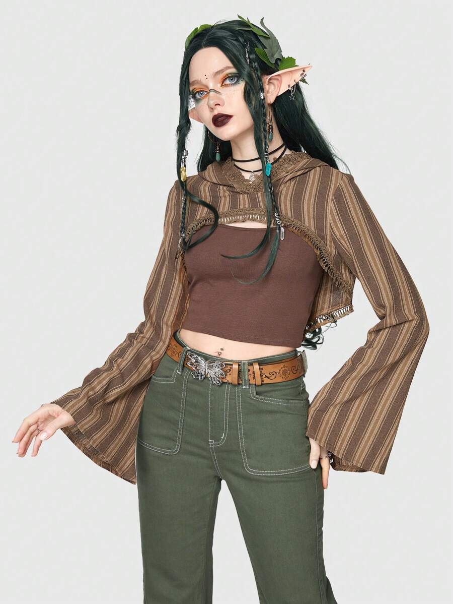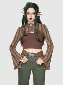 Fairycore Top Très Court À Rayures Manches Évasées (Sans Camisole)